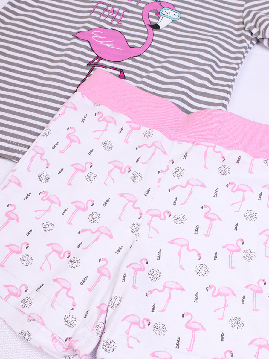 762542216 Пижама детская: футболка и шорты "Flamingo" котмаркот розовый размер 128