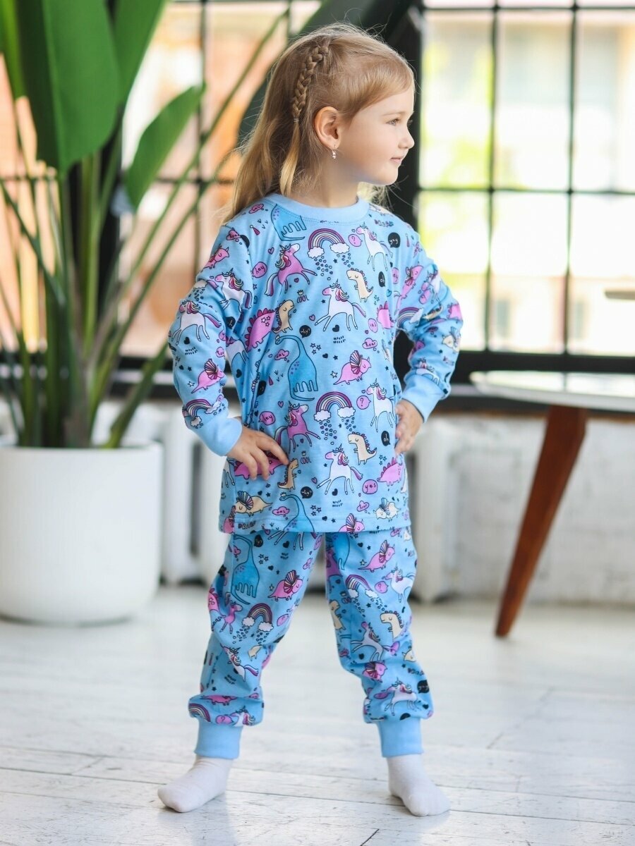 Пижама детская летняя с длинным рукавом Miko Yumi Единороги и радуга размер 122
