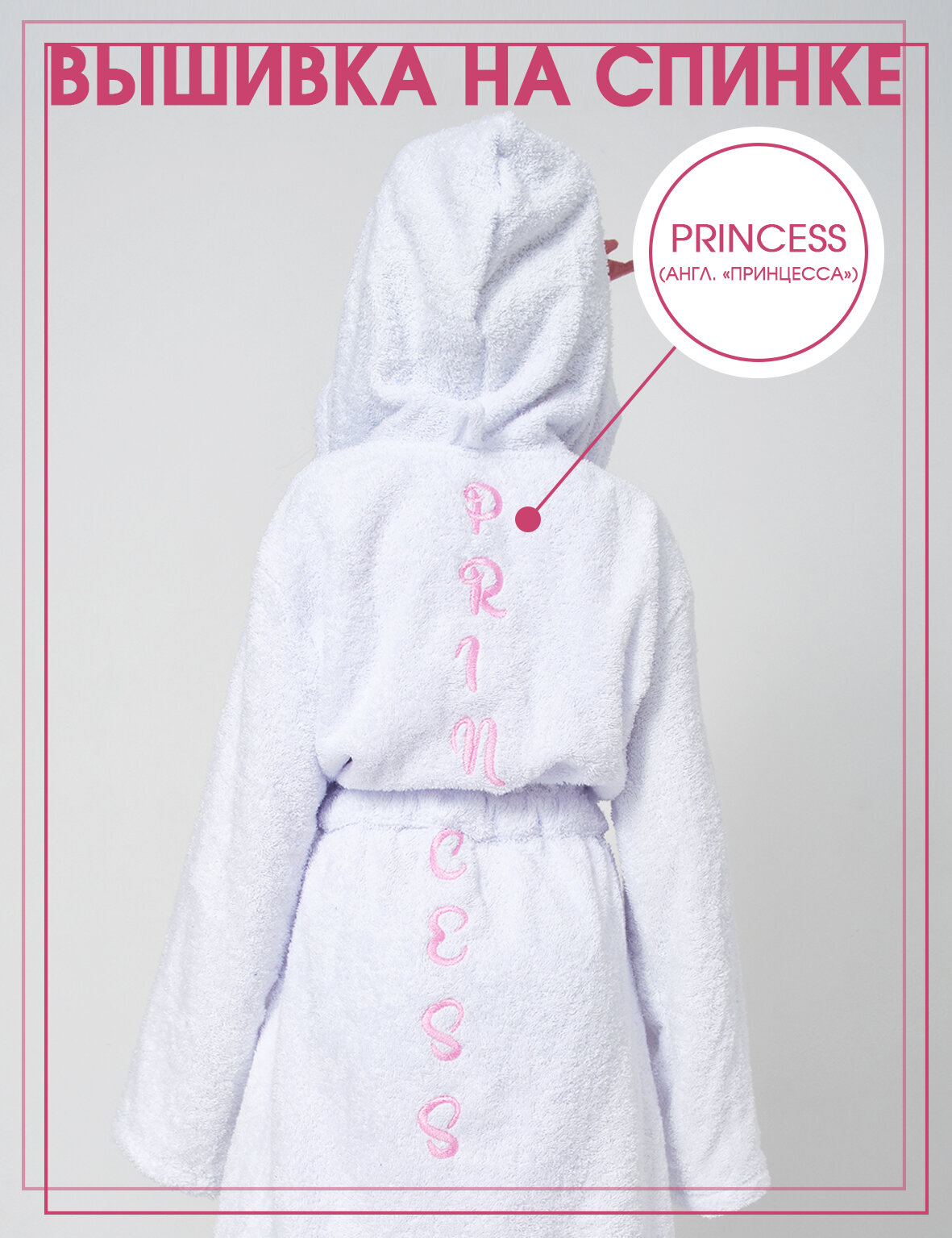 Купить Халат махровый для девочки c капюшоном Winkiki "Принцесса" WH111 Белый 134-140 размер