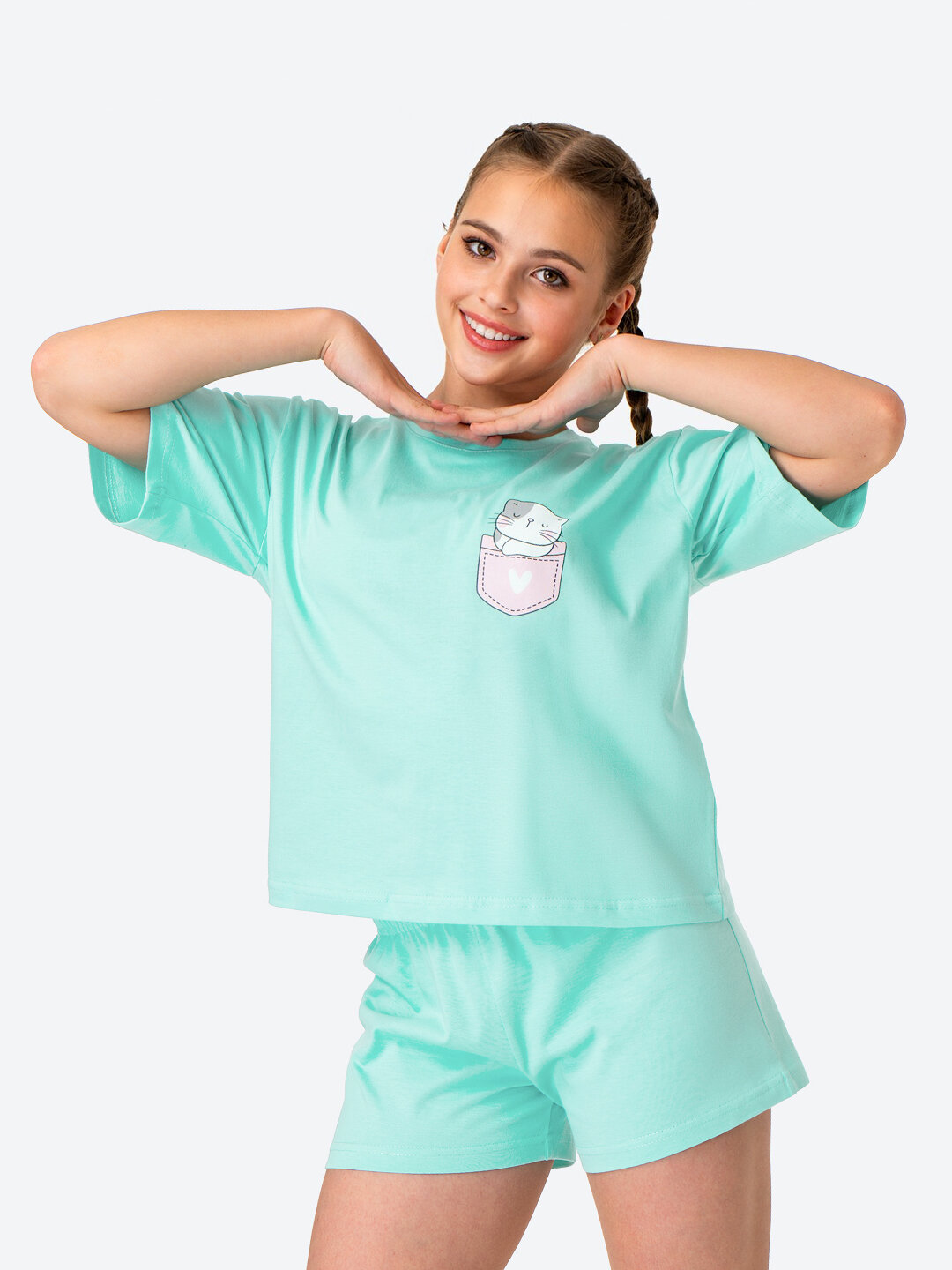 Пижама детская для девочки с шортами HappyFox, HF5900DSP размер 146, цвет дабстеп.ментол