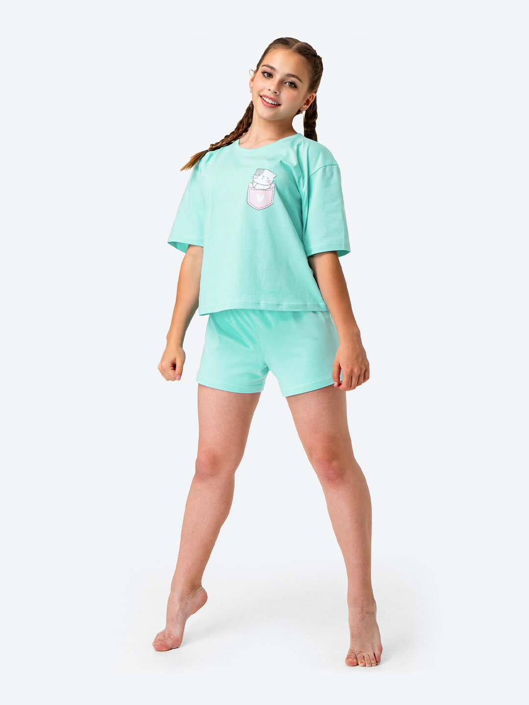 Пижама детская для девочки с шортами HappyFox, HF5900DSP размер 164, цвет дабстеп.ментол