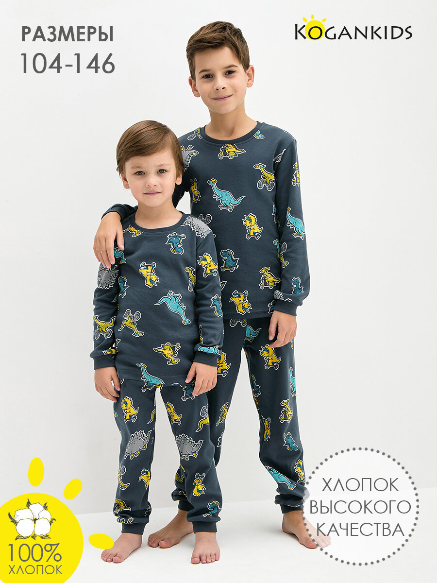 Пижама для мальчика,KOGANKIDS,синий набивка, 128 / 8 лет
