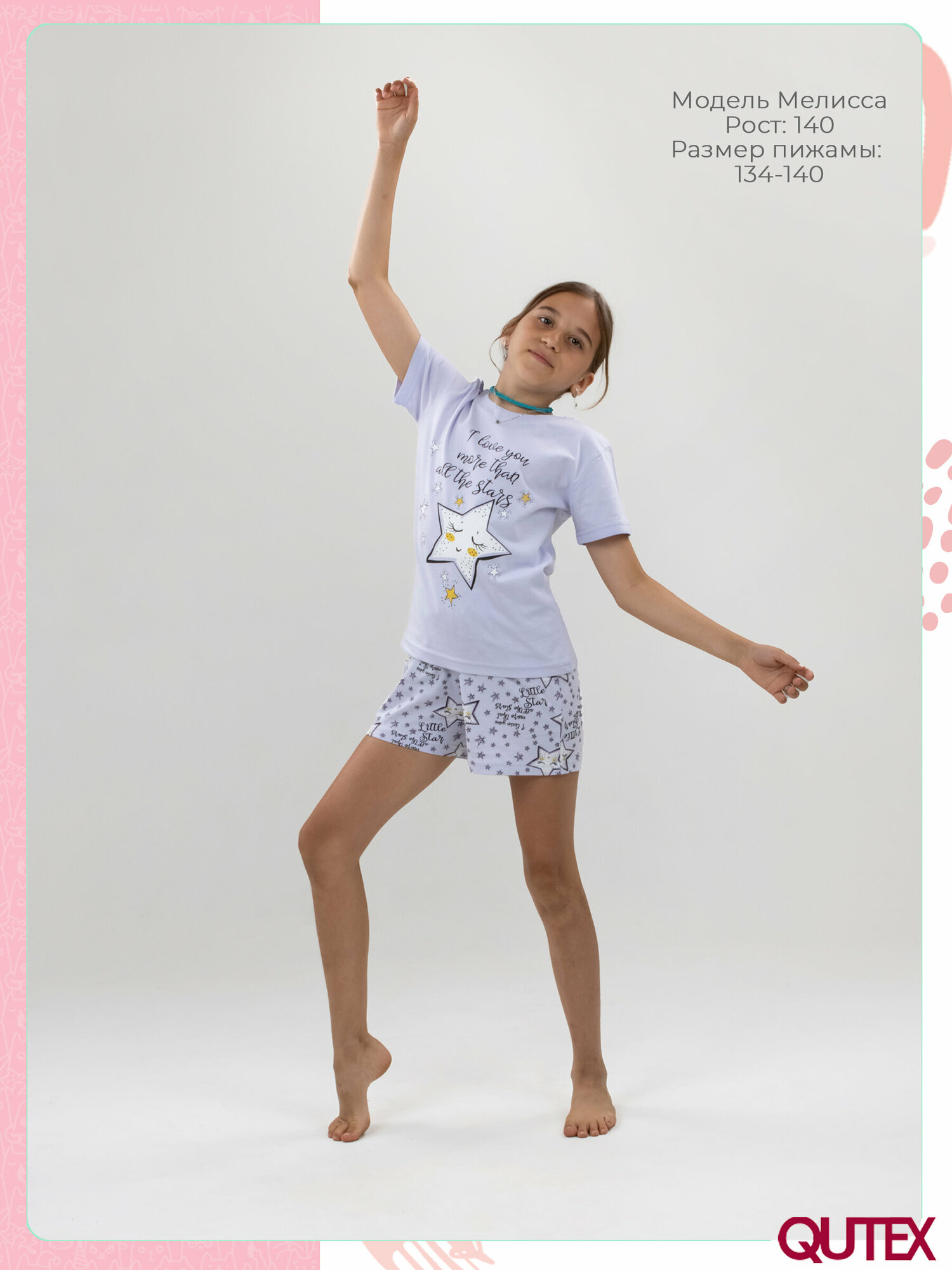 Пижама QUTEX для девочки, шорты и футболка, размер 116-122