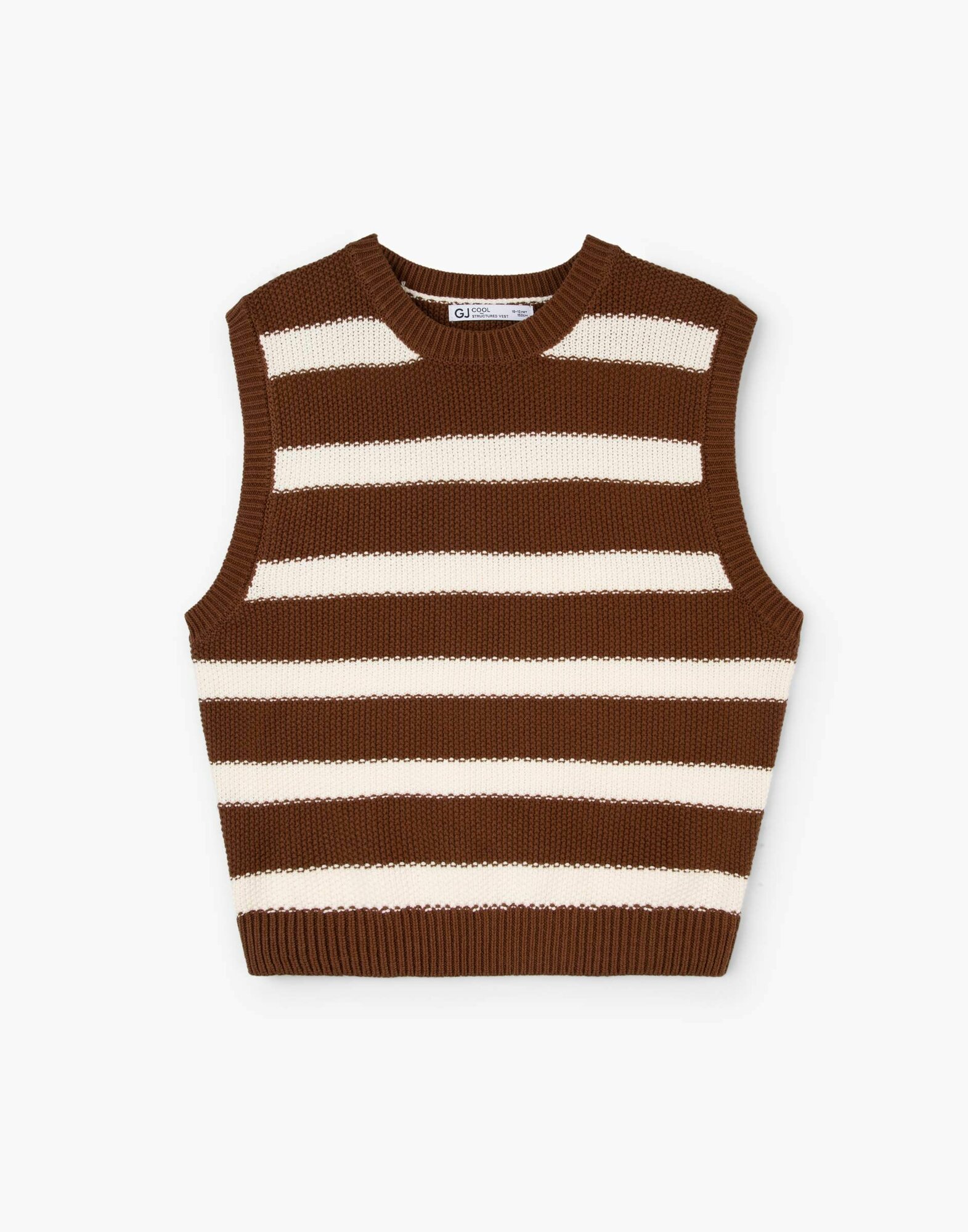 Жилет GSW006860 трикотаж коричневый/молочный 8-10л/140