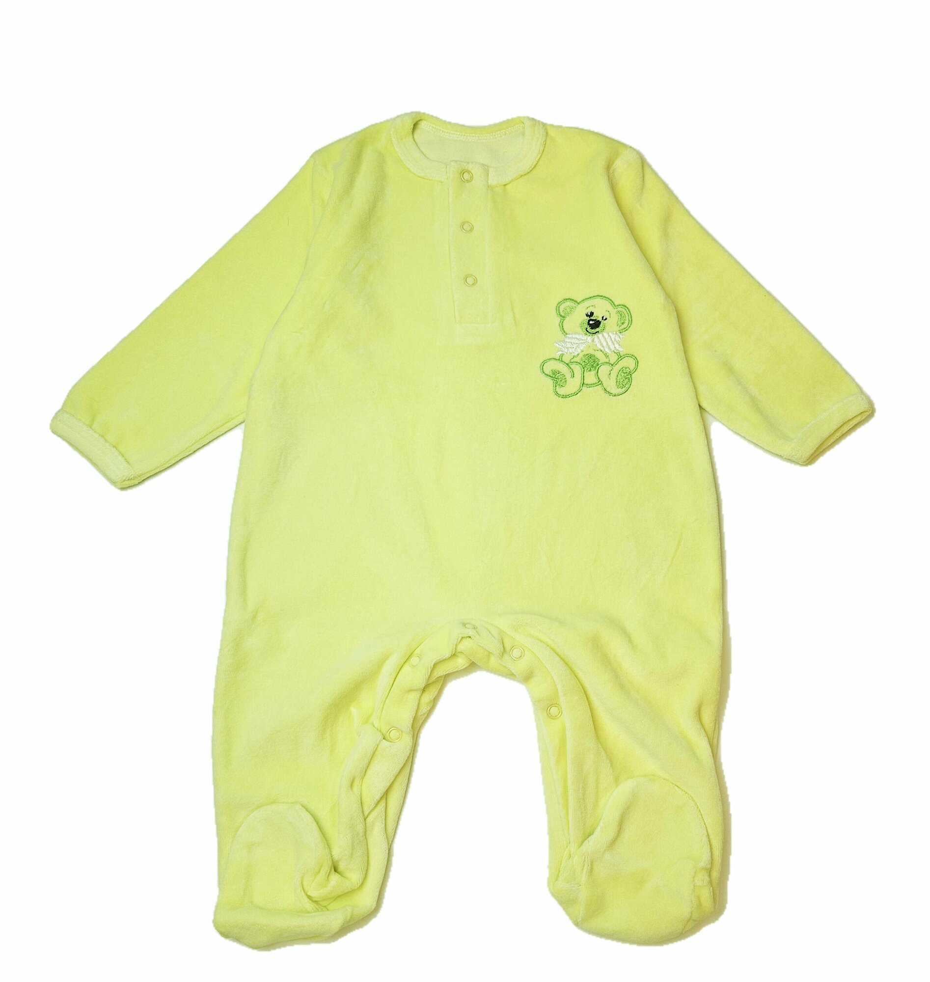 Комбинезон велюровый с вышивкой, Сказка, салатовый, на шаговом шве кнопки, размер 68-44