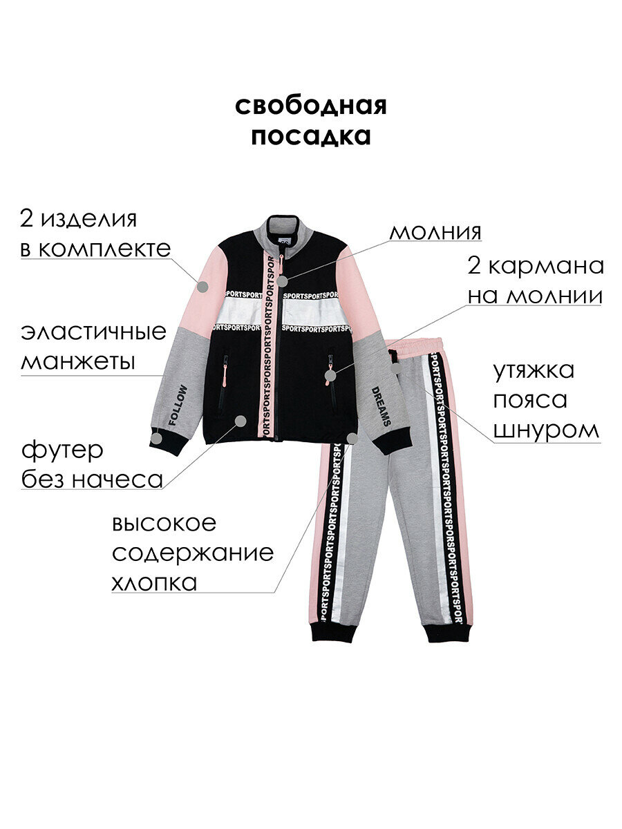 Комплект для девочки: толстовка, брюки PlayToday, размер 122, черный интересное: