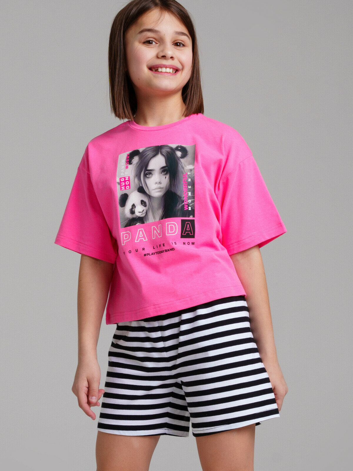 СохранитьКомплект для девочки: майка, шорты, футболка PlayToday, размер 152, черный интересное: