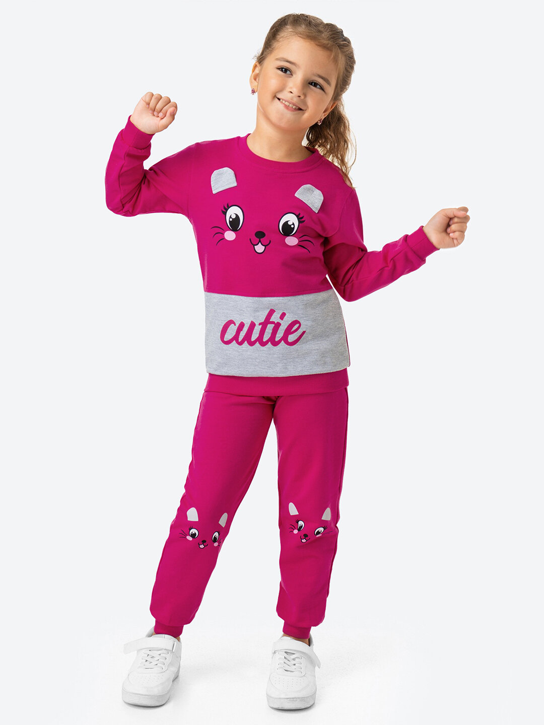 Купить Костюм для девочки трикотажный 100% хлопок HappyFox HF00121 фуксия 98