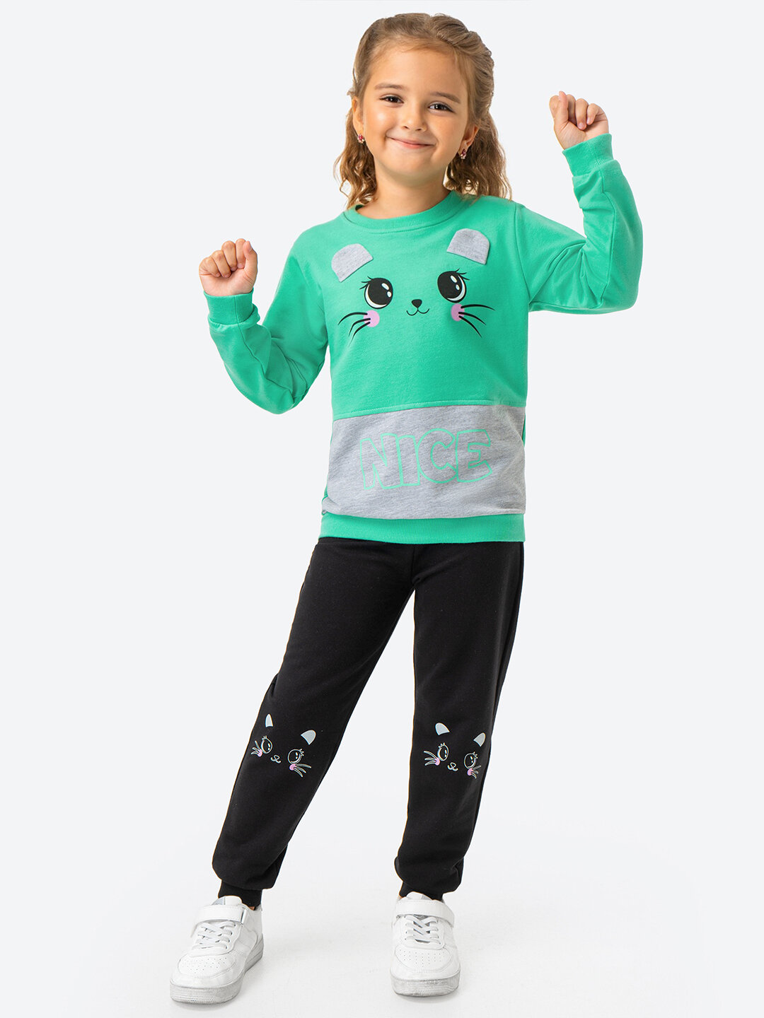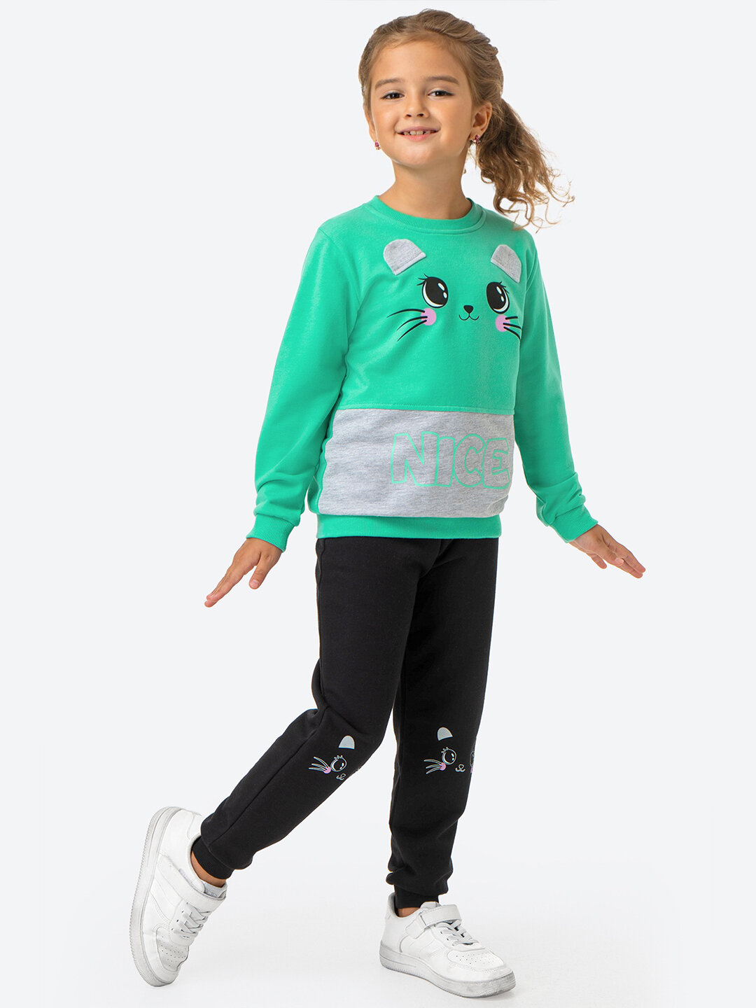 Купить Костюм для девочки трикотажный 100% хлопок HappyFox HF00121 ментоловый 98