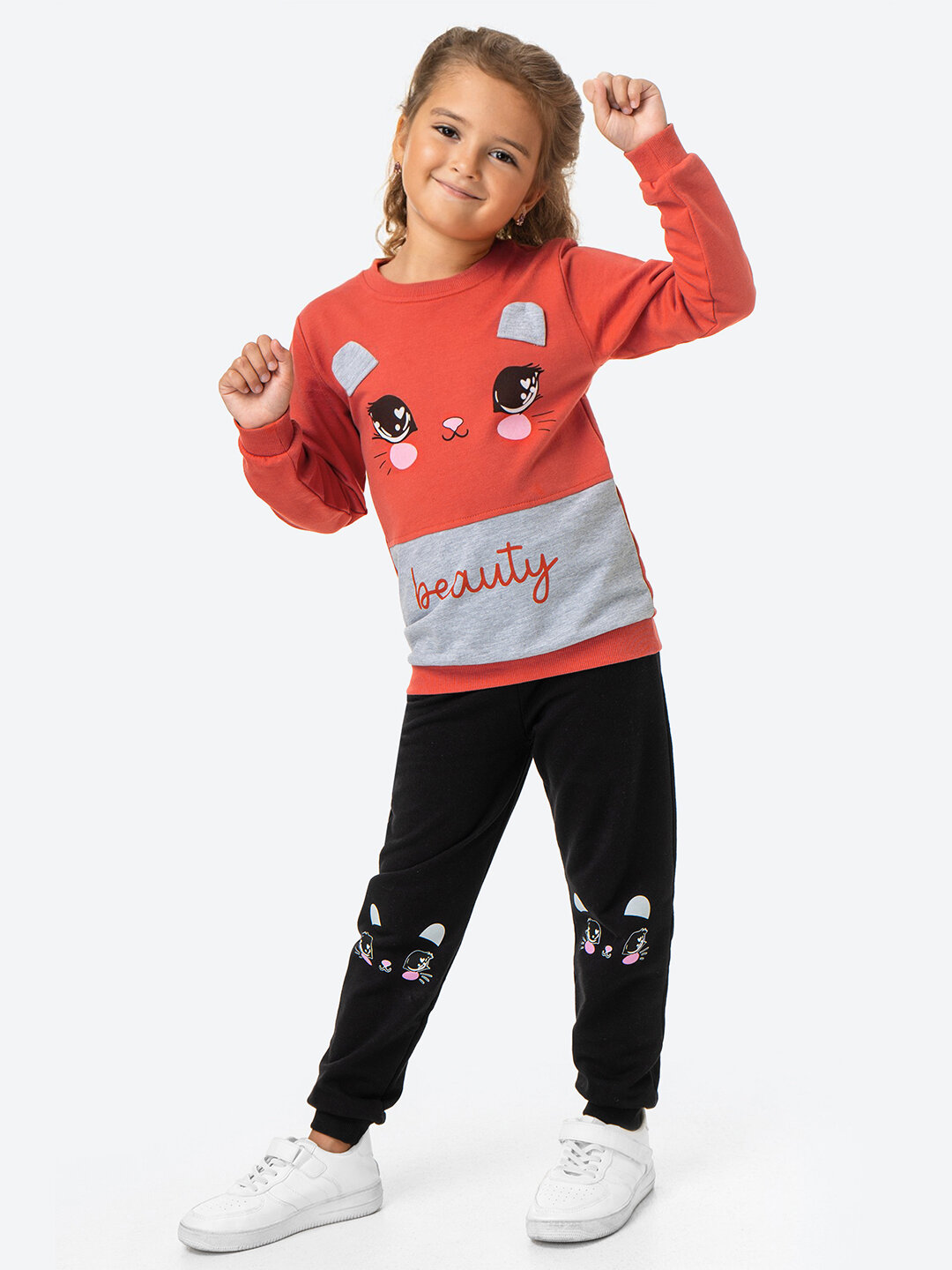 Купить Костюм для девочки трикотажный 100% хлопок HappyFox HF00121 кирпичный 104