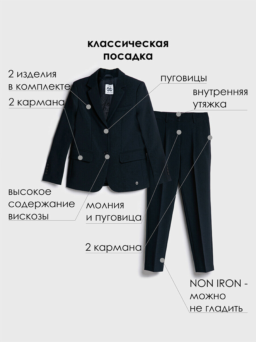 Купить Комплект для девочки: брюки, пиджак PlayToday, размер 164, темно-синий