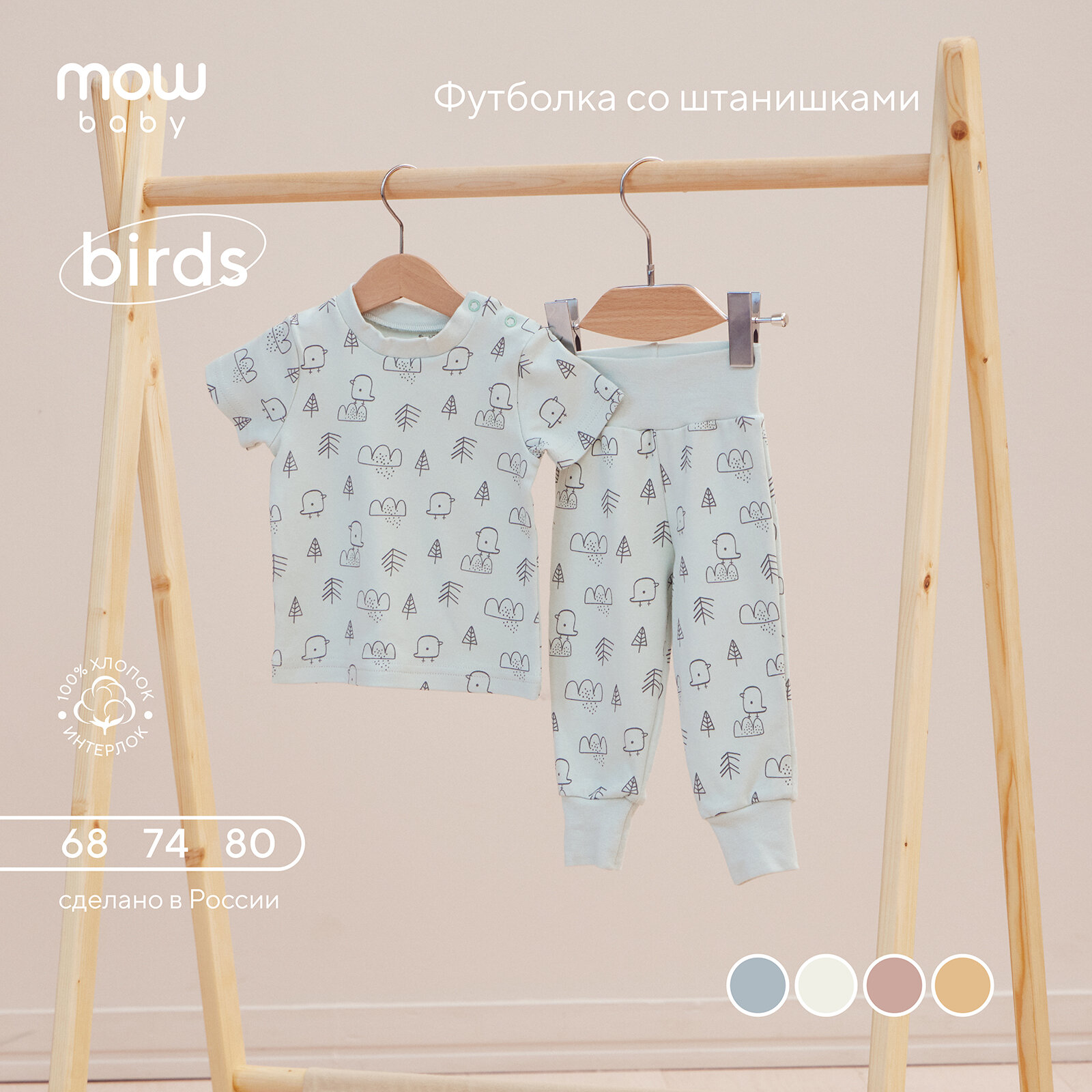 Футболка со штанишками MowBaby Birds Blue 2-82 р.68 интересное: