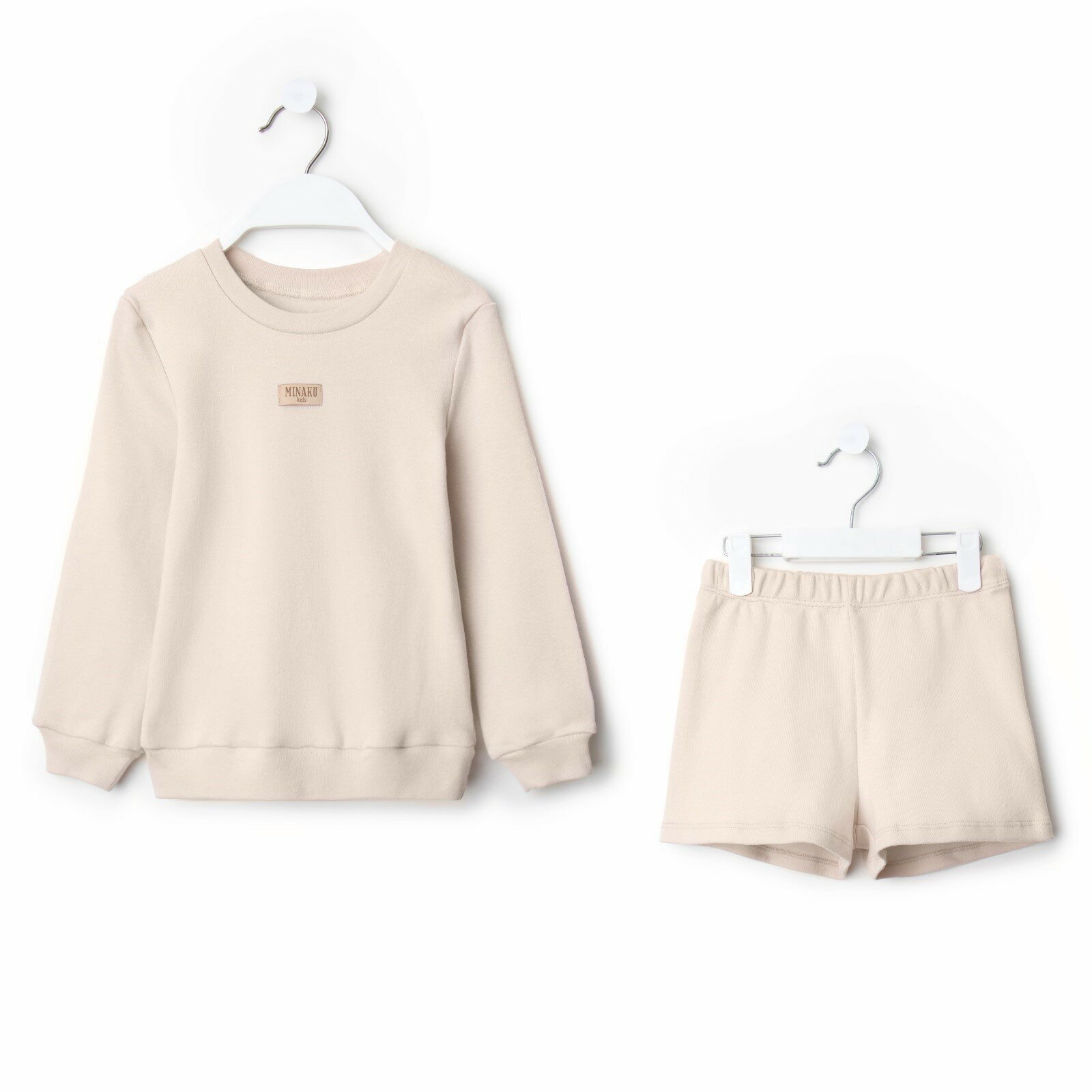 Костюм детский (свитшот, шорты) MINAKU, цвет бежевый, рост 110 см