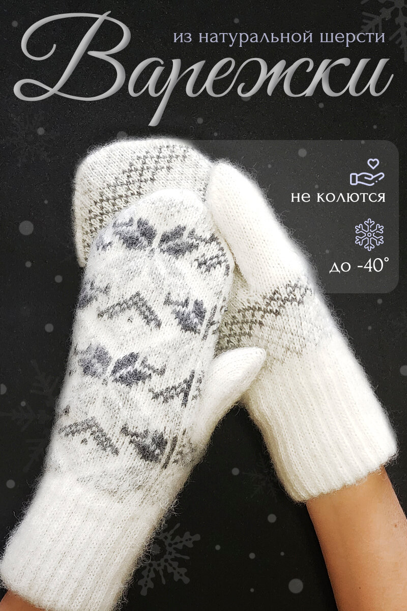 Варежки Философия уюта для женщин, размер 17, белый/серый