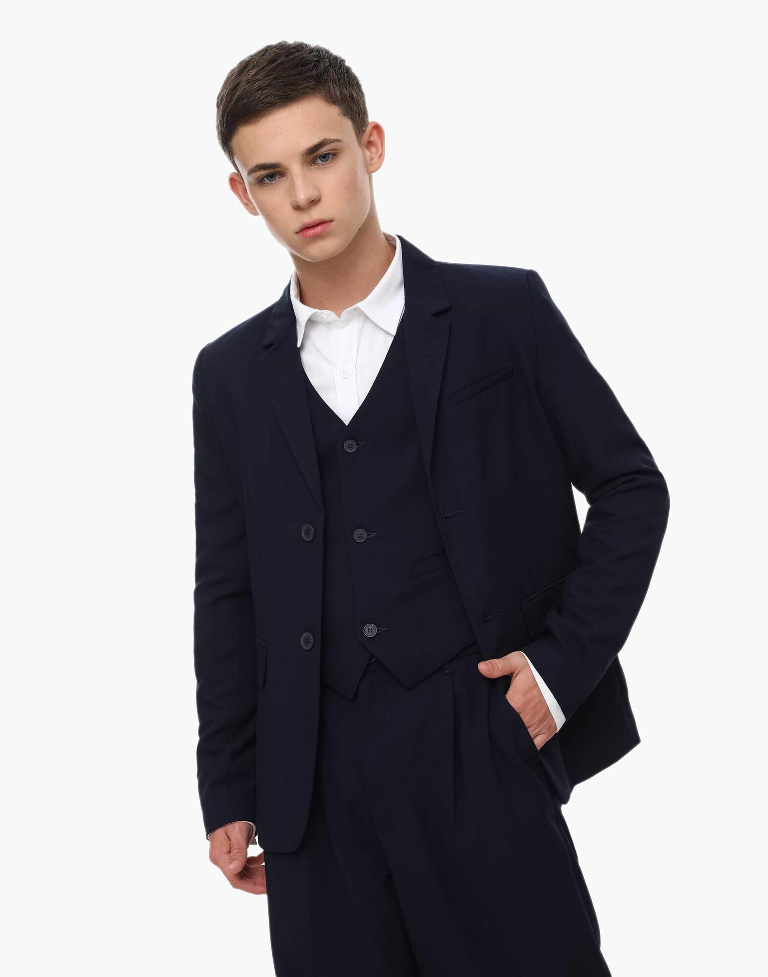 Пиджак BSU000333 тканая темно-синий 11-12л/152