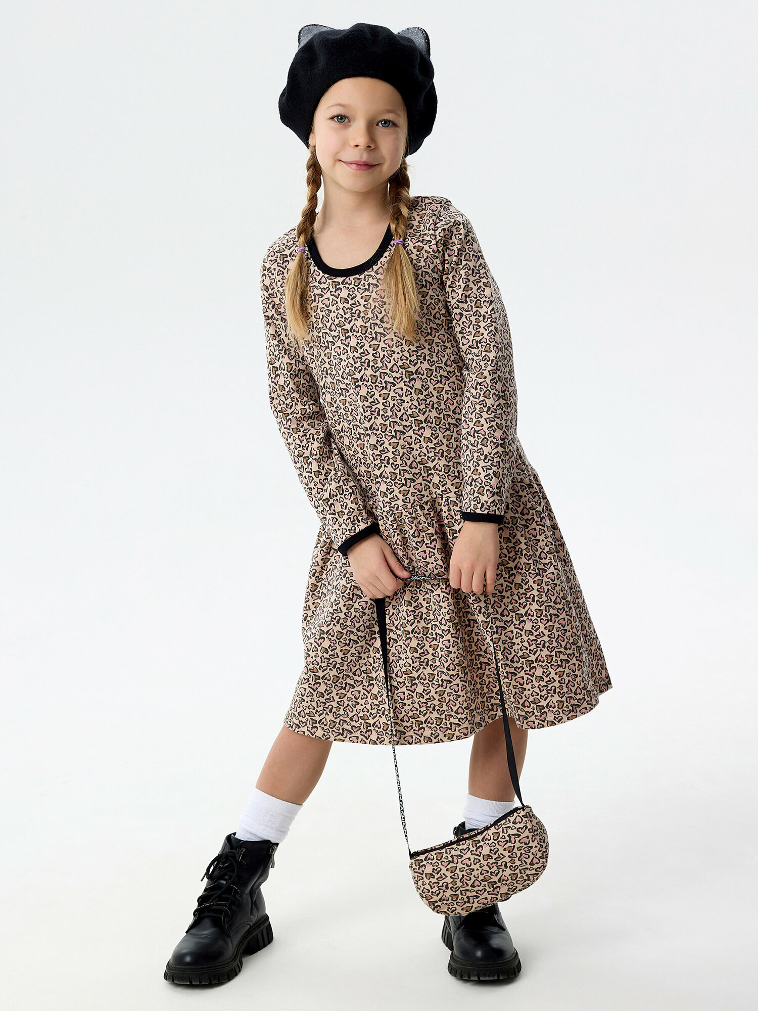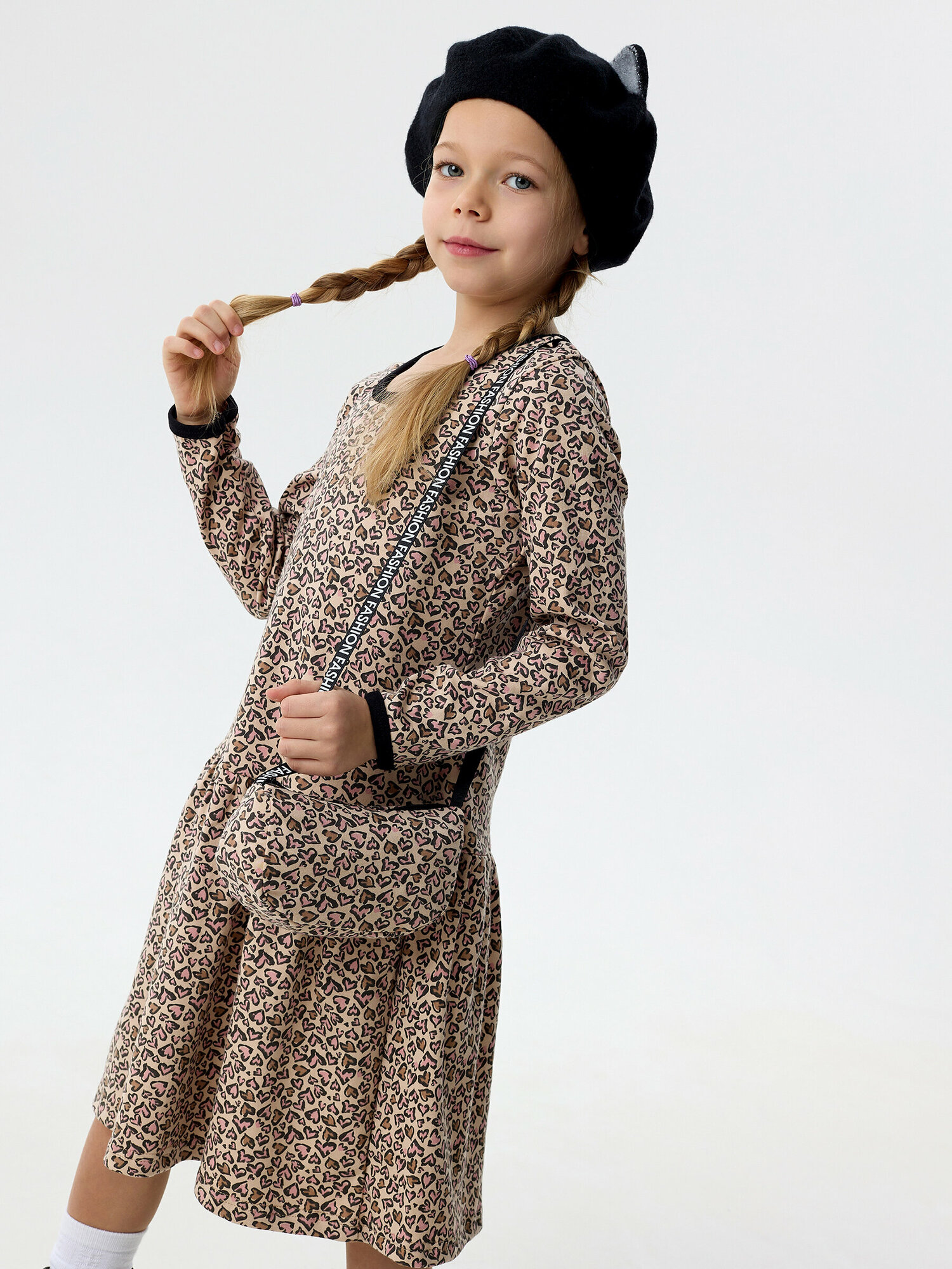 Детское леопардовое платье с сумочкой, Дети в Цвете, размер 128