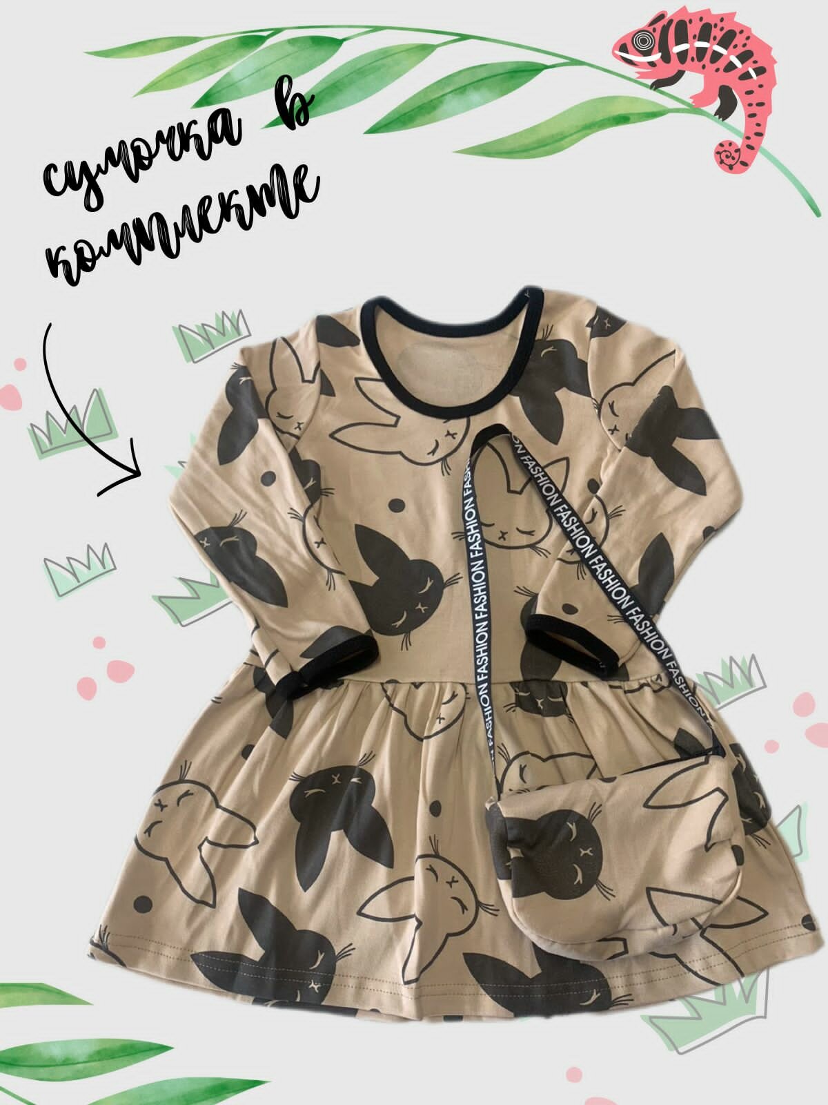 Детское платье с сумочкой, Дети в Цвете, цвет светло-коричневый, размер 104