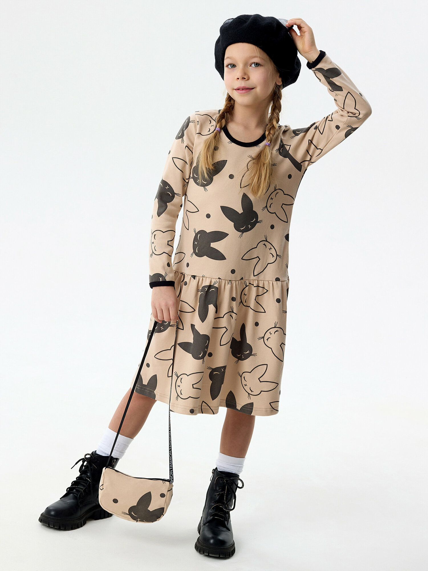 Детское платье с сумочкой, Дети в Цвете, цвет светло-коричневый, размер 128