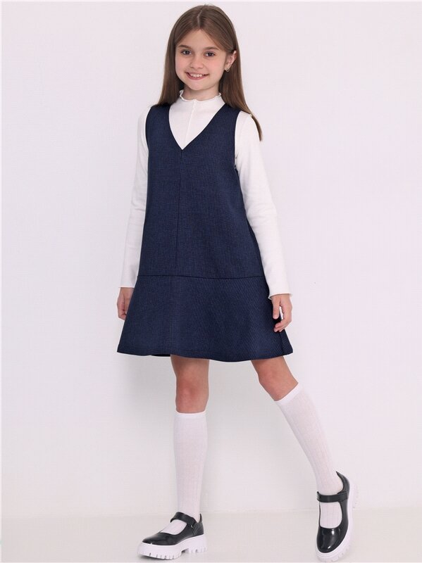 Сарафан для девочки школьный трикотажный синий Апрель 1ДПС3456258н/989/*/5082/*/*/*/* синий 76-146