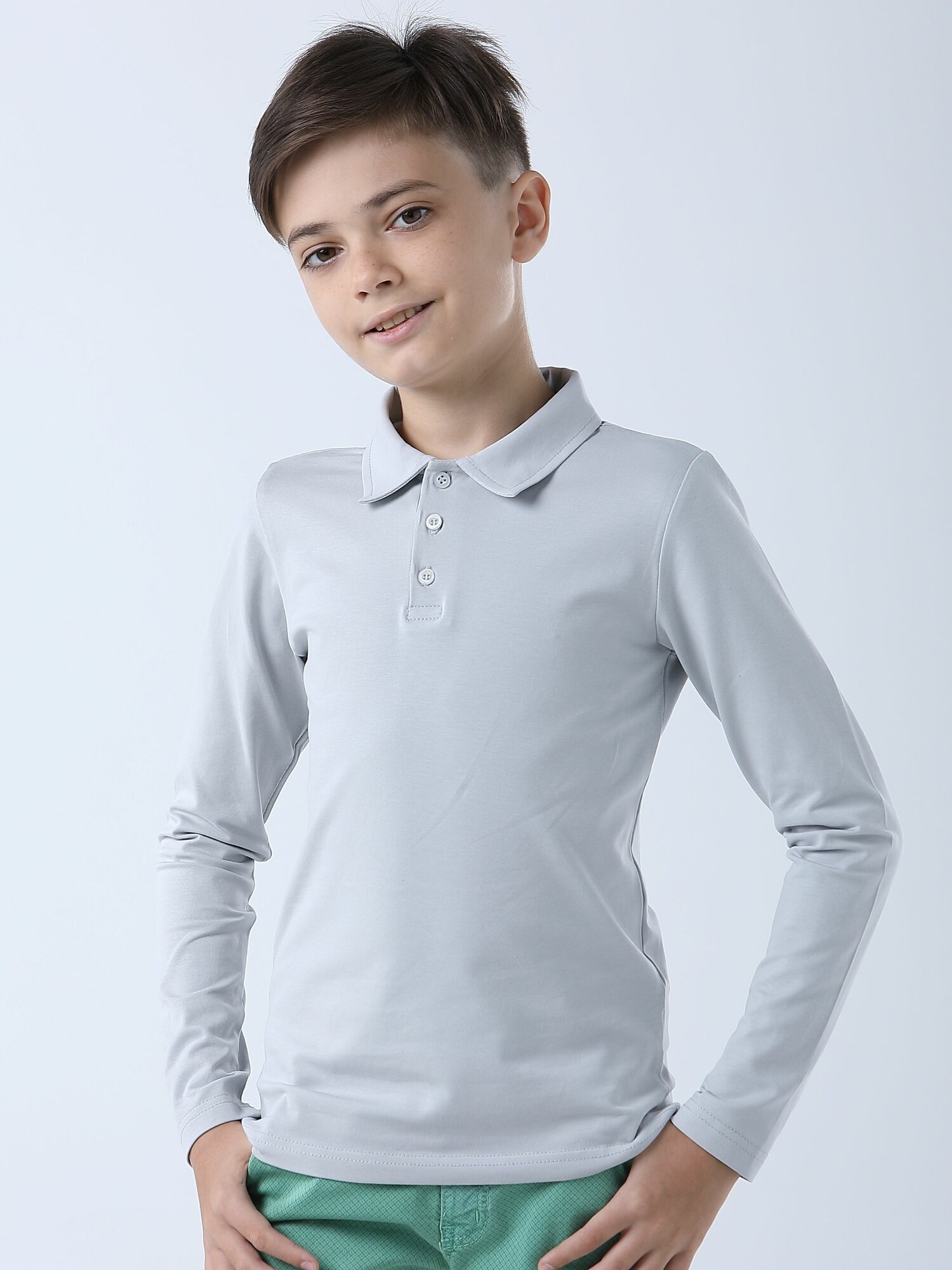 Футболка-поло для мальчика LADNO с длинным рукавом, серая, 140