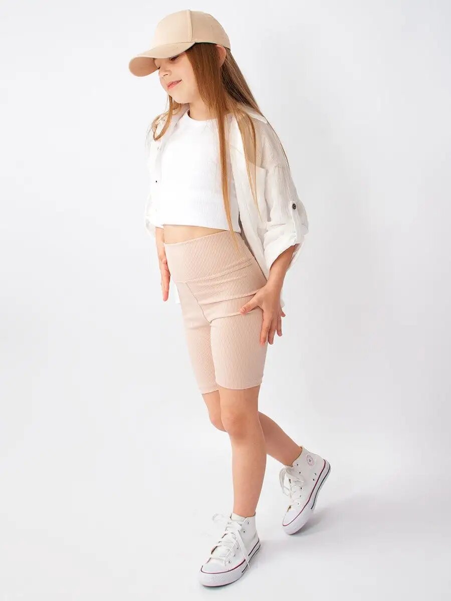 Купить Велосипедки бежевые в рубчик