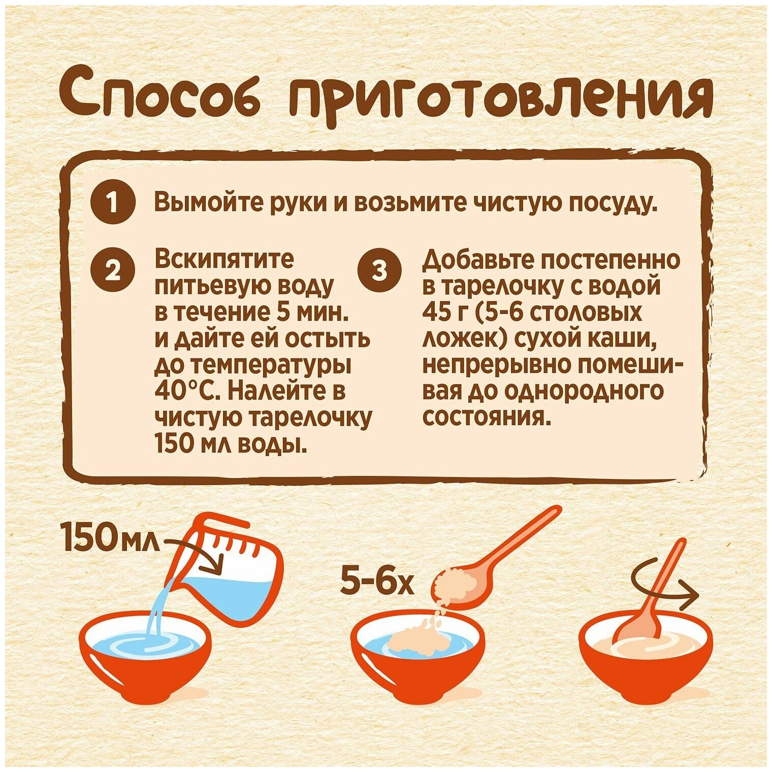 | Состав | мука (пшеничная (57%) (содержит глютен) / овсяная (7,9%) (содержит глютен) / рисовая (2%) / кукурузная (2%)) / молоко сухое обезжиренное (16,6%) / смесь растительных масел (низкоэруковое рапсовое / подсолнечное высокоолеиновое / подсолнечное) / антиокислители (L-аскорбилпальмитат / альфа-токоферол / лимонная кислота) / хлопья груши (2,6%) (груша / мальтодекстрин / крахмал кукурузный) / хлопья персика (1,5%) (содержат загуститель (пектин)) / минеральные вещества (кальция карбонат / железа (II) фумарат / цинка сульфат / йодид калия) / витамины (С (L-аскорбиновая кислота) / E (DL-альфа-токоферола ацетат) / РР (никотинамид) / B5 (D-пантотенат кальция) / A (ретинола ацетат) / В1 (тиамина мононитрат) / В6 (пиридоксин гидрохлорид) / В2 (рибофлавин) / B9 (фолиевая кислота) / D (D3 холекальциферол)) / бифидобактерии не менее 1х10^6 КОЕ/г |