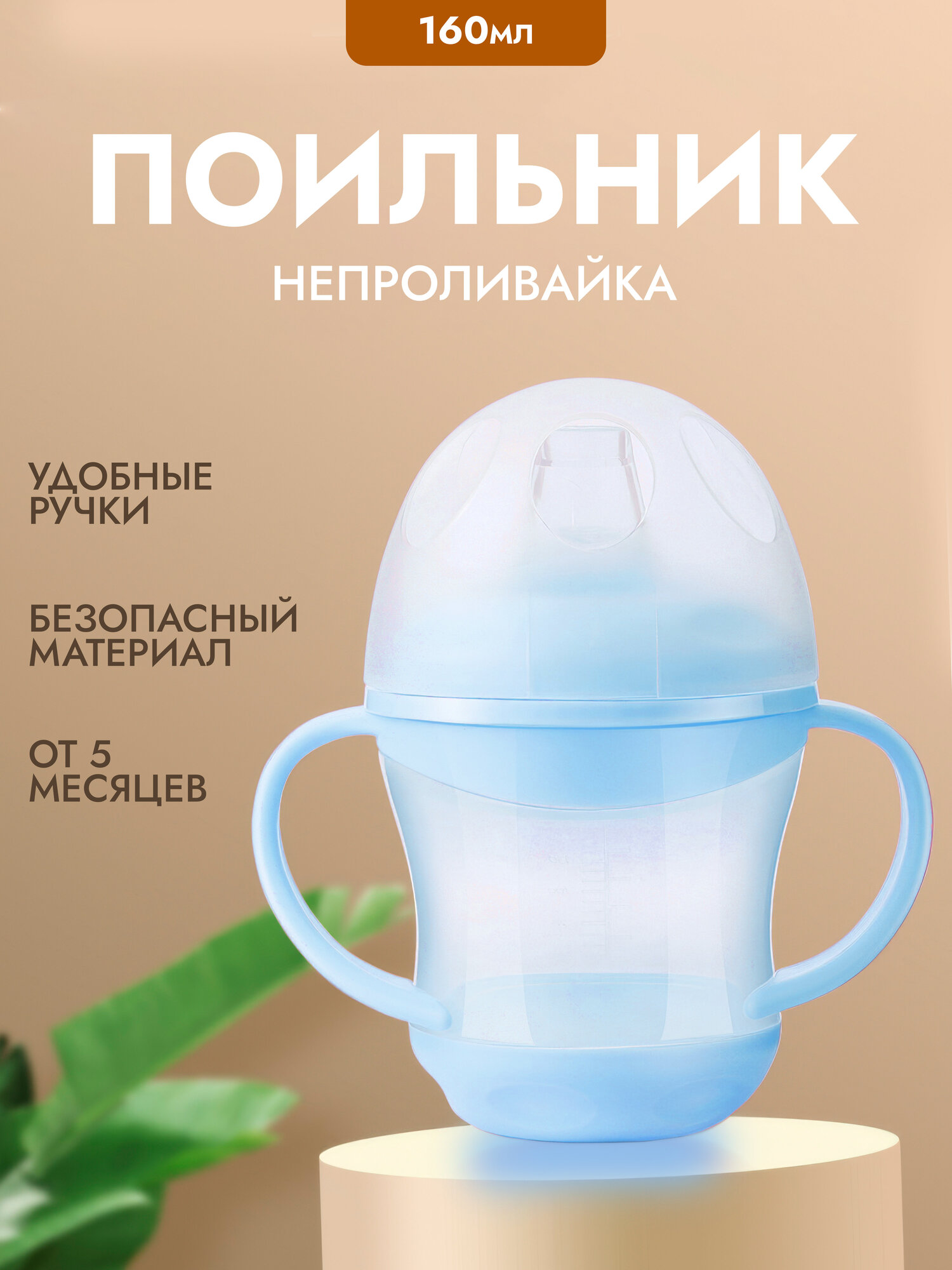 Поильник непроливайка c мягким носиком и ручками 160мл