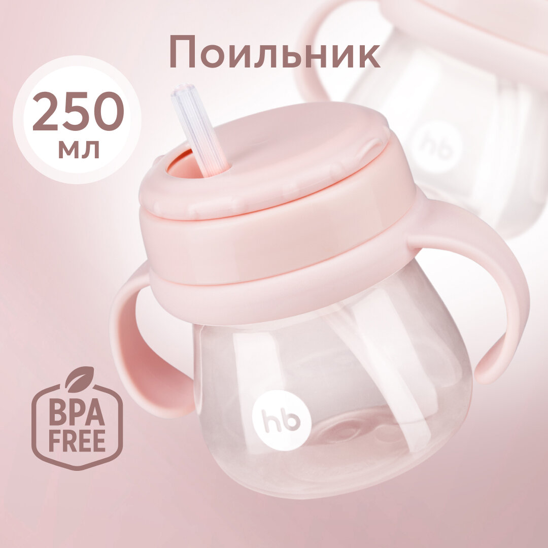 Купить Хэппи бэби HAPPY BABY Поильник с трубочкой и ручкой feeding cup 250мл 9+/розовый