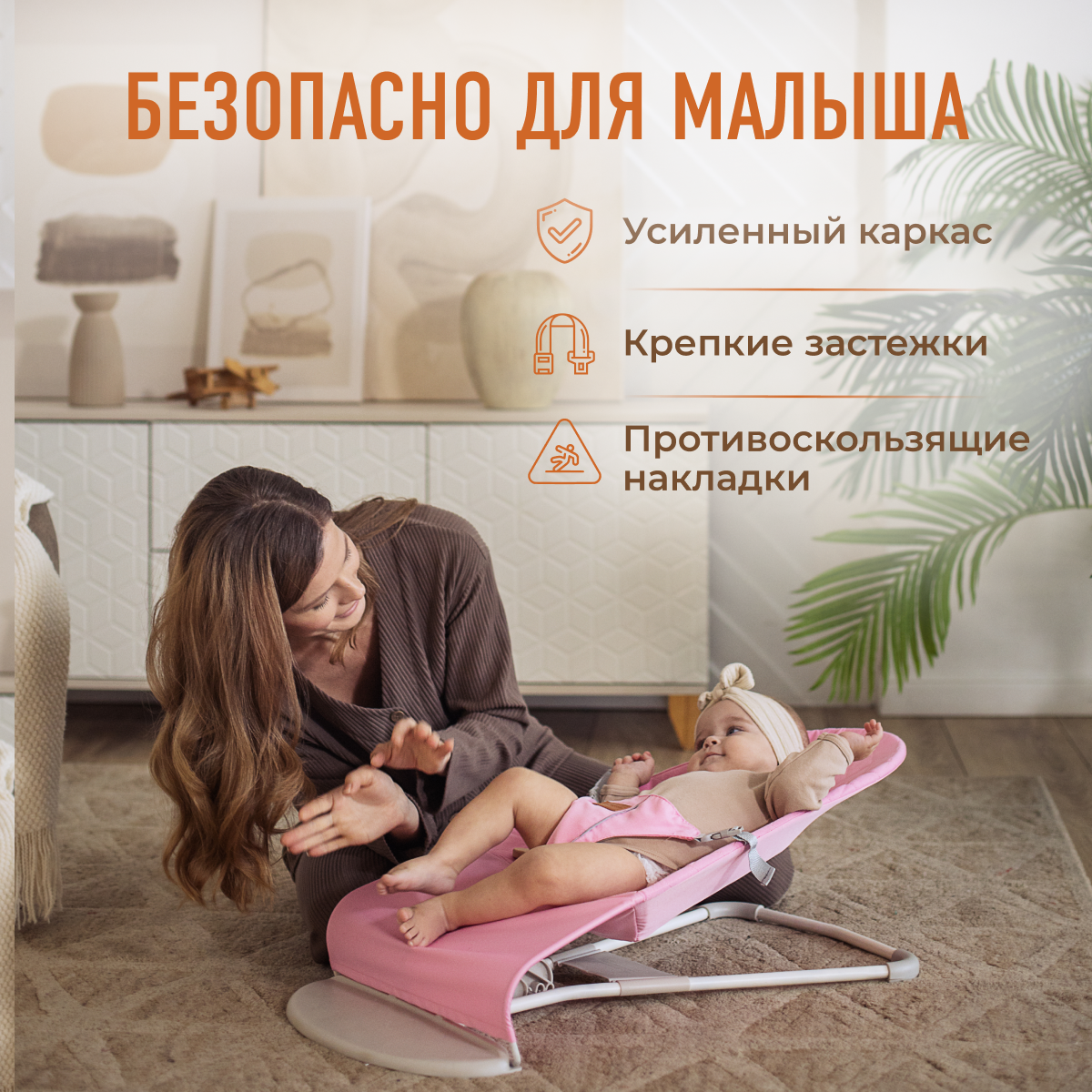 Детский складной шезлонг для новорожденных Mamagoods кресло качалка для малышей от 0