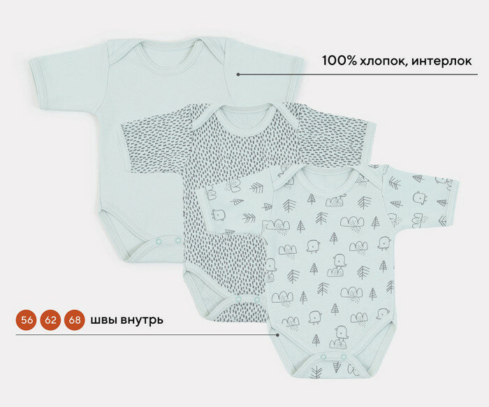 Боди с коротким рукавом MowBaby Birds Blue 6282 р.56 (3шт. в уп.)