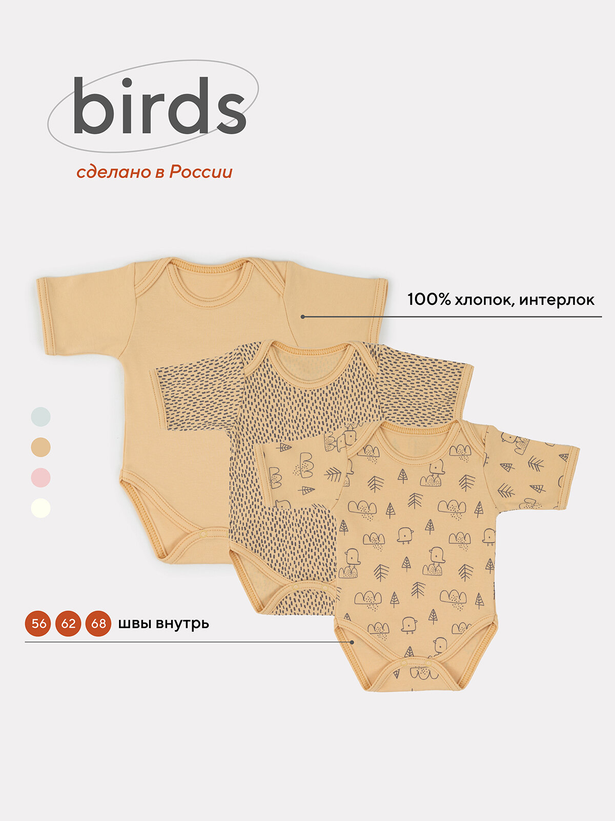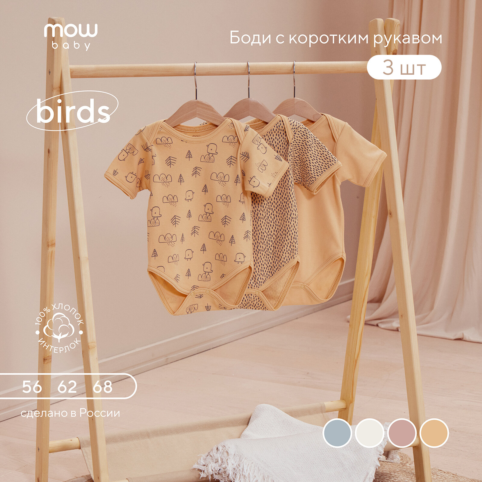 Купить Боди с коротким рукавом MowBaby Birds Yellow 6282 р.56 (3шт. в уп.)