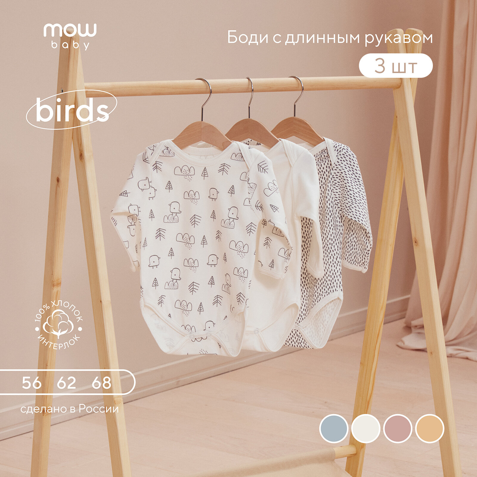 Купить Боди с длинным рукавом MowBaby Birds Milk 6182 р.68 (3шт. в уп.)