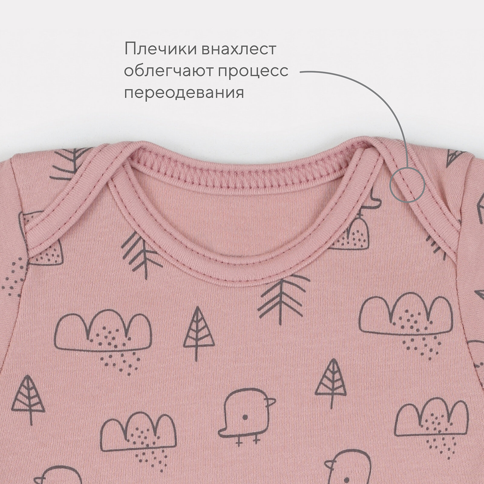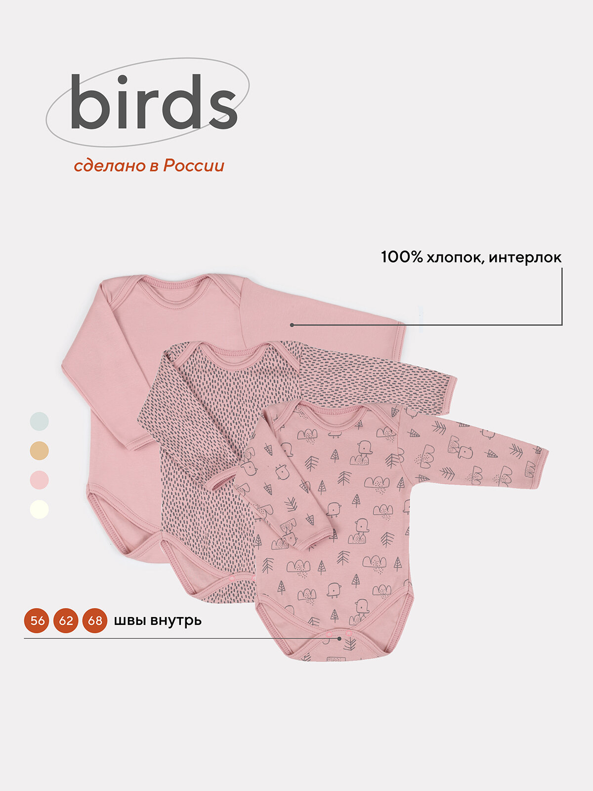Боди с длинным рукавом MowBaby Birds Rose 6182 р.56 (3шт. в уп.) интересное: