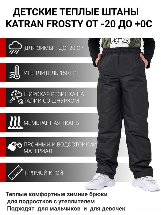 Купить Детские зимние мембранные брюки для прогулок и спорта KATRAN Frosty (мембрана, черный), Размер: 164-170
