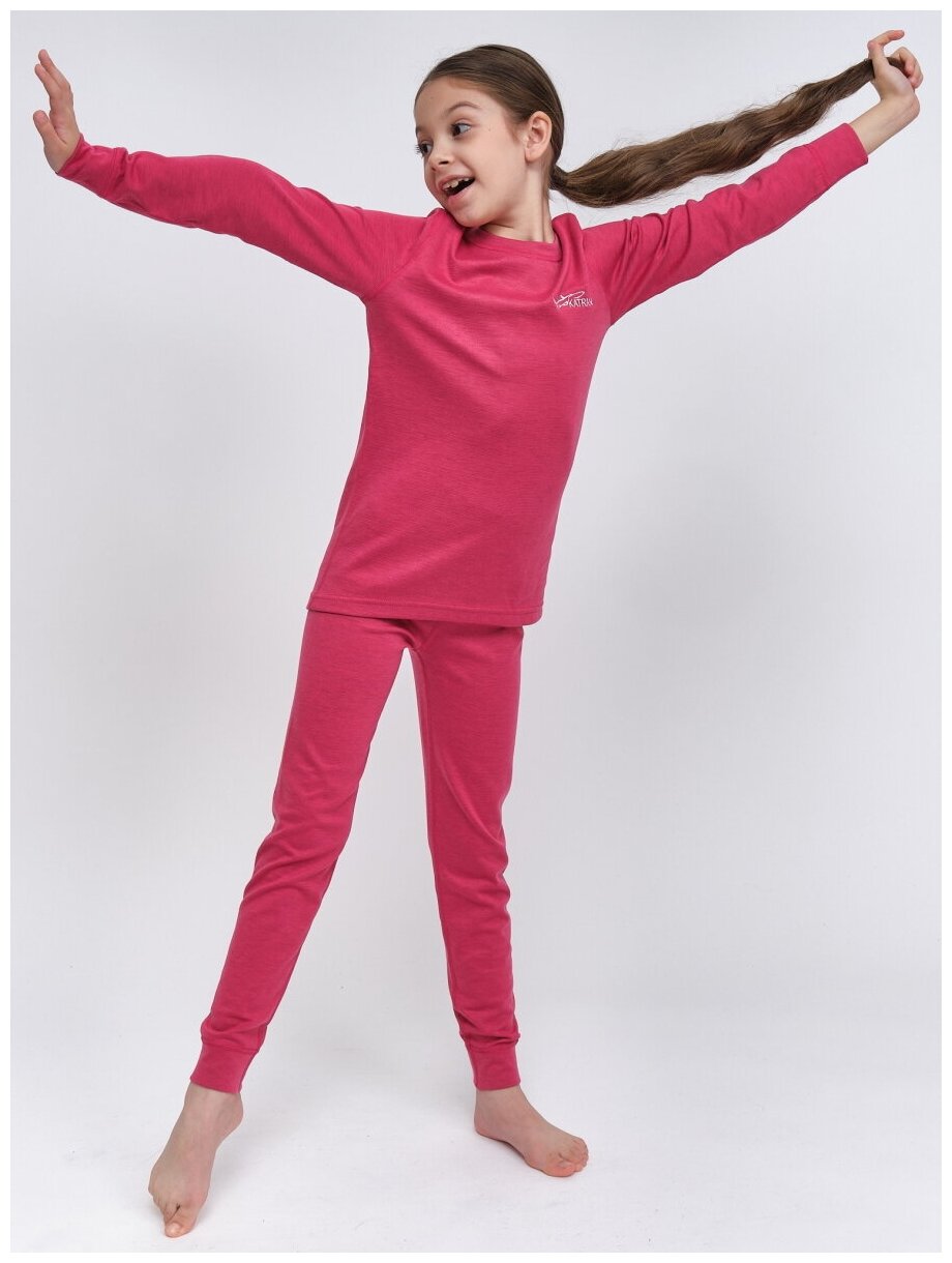 Термобелье детское зимнее для спорта влагоотводящее для прогулок комплект термобелья для девочек KATRAN луффи (+5С до - 25С), Розовый, Размер: 128-134
