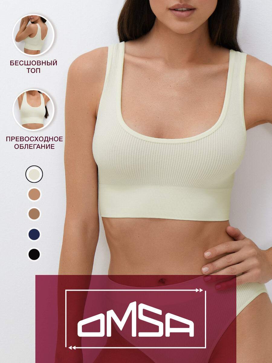 Майка-топ OMSA Wafle 1242-01SS бесшовная, спортивная, в рубчик из микрофибры цвет Avorio размер 46/48 (M/L)