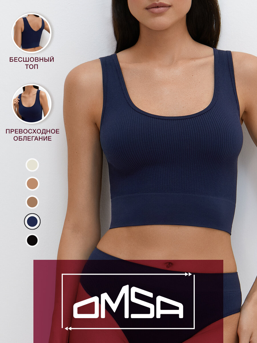 Майка-топ OMSA Wafle 1242-01SS бесшовная, спортивная, в рубчик из микрофибры цвет Blu размер 46/48 (M/L)