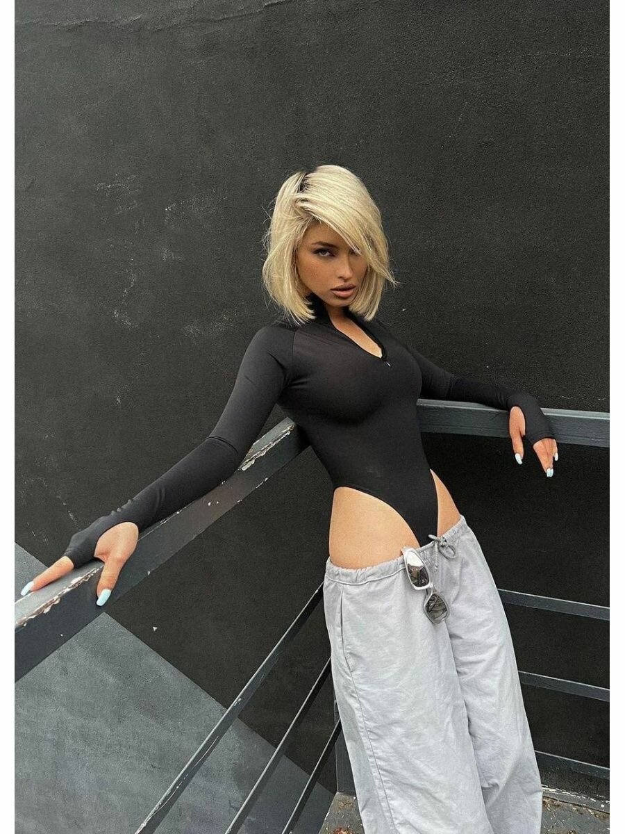 Боди с высоким вырезом бедра и длинным рукавом твое, арт. 102862, черный, S
