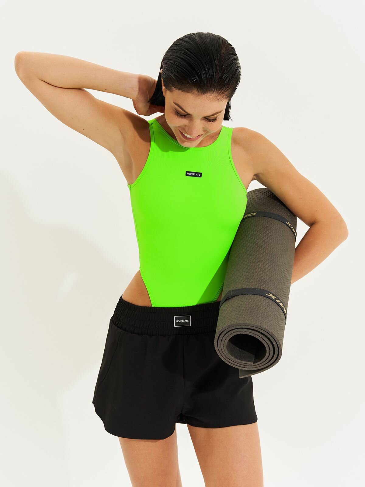 Боди NEVERLATE женское эластичное обтягивающее с круглым воротом и высоким вырезом бедра неоновый зеленый