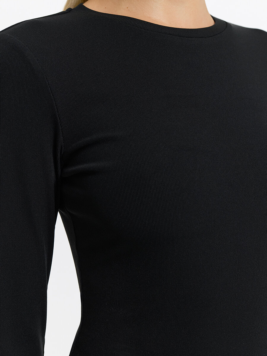 Боди с высоким вырезом бедра и длинным рукавом твое, арт. 102862, черный, S