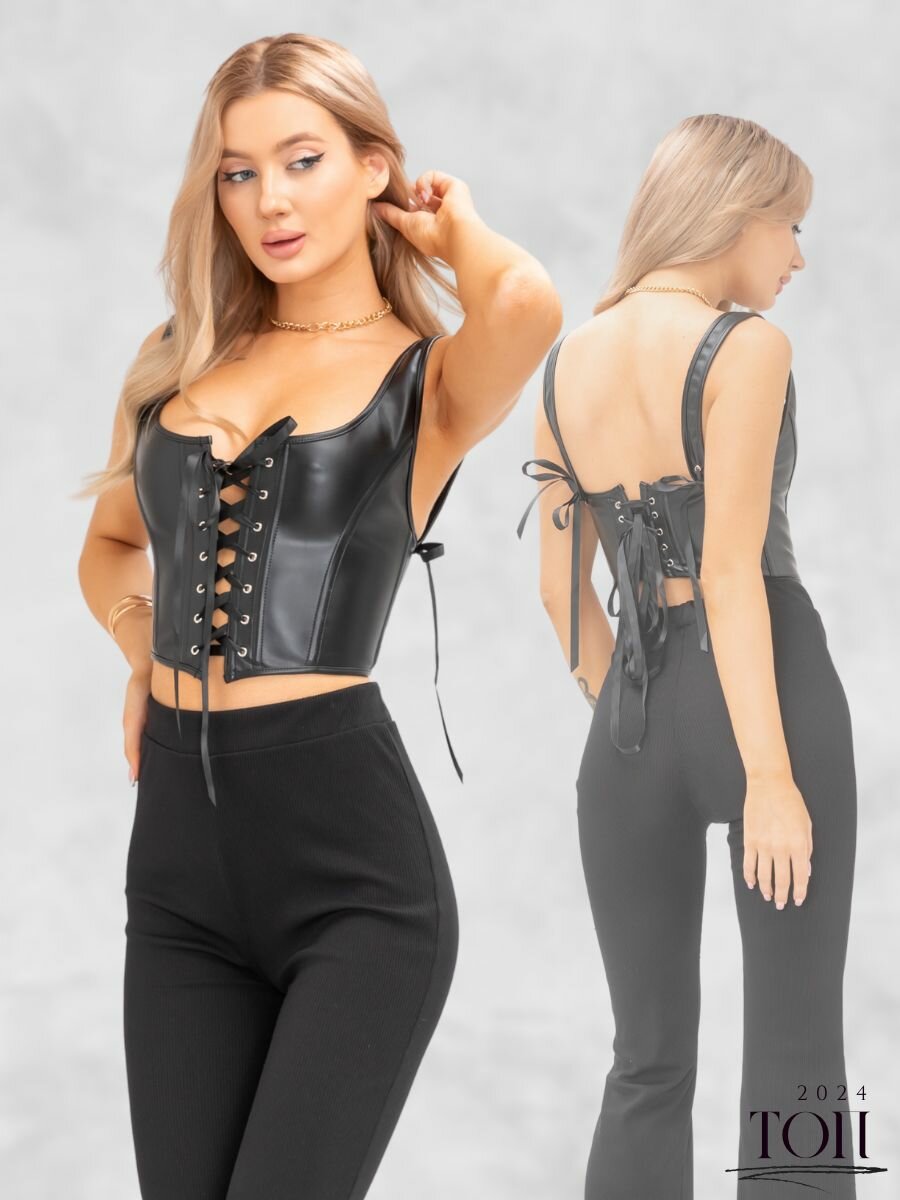 Корсет топ с лямками вечерний утягивающий -S экокожа