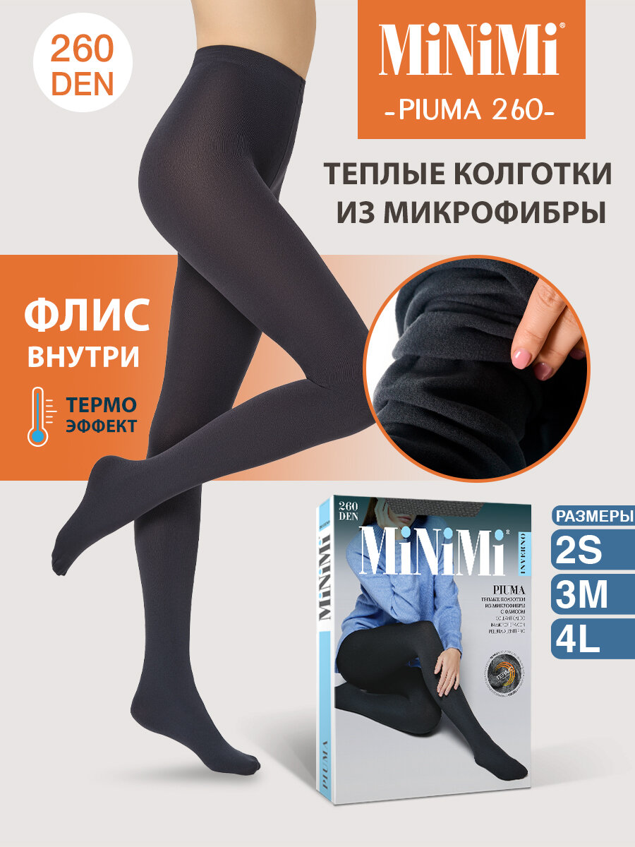 Колготки женские гладкие снаружи с флисом внутри MiNiMi Piuma 260 den, размер 2=S с ластовицей, цвет Grigio scuro=Тёмно-серый