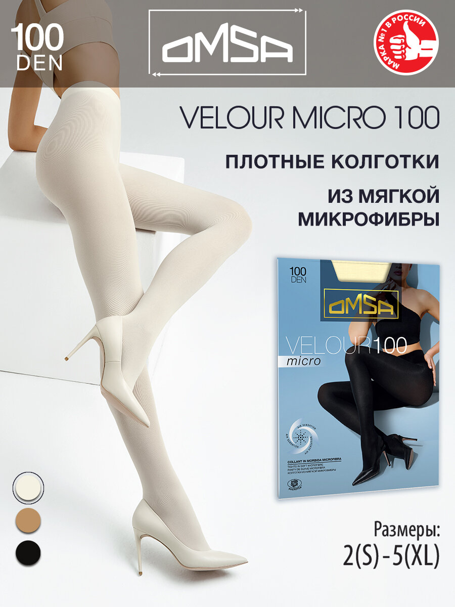 Колготки женские OMSA VELOUR MICRO 100 den, плотные эластичные колготки из мягкой микрофибры, цвет Nero, размер 2