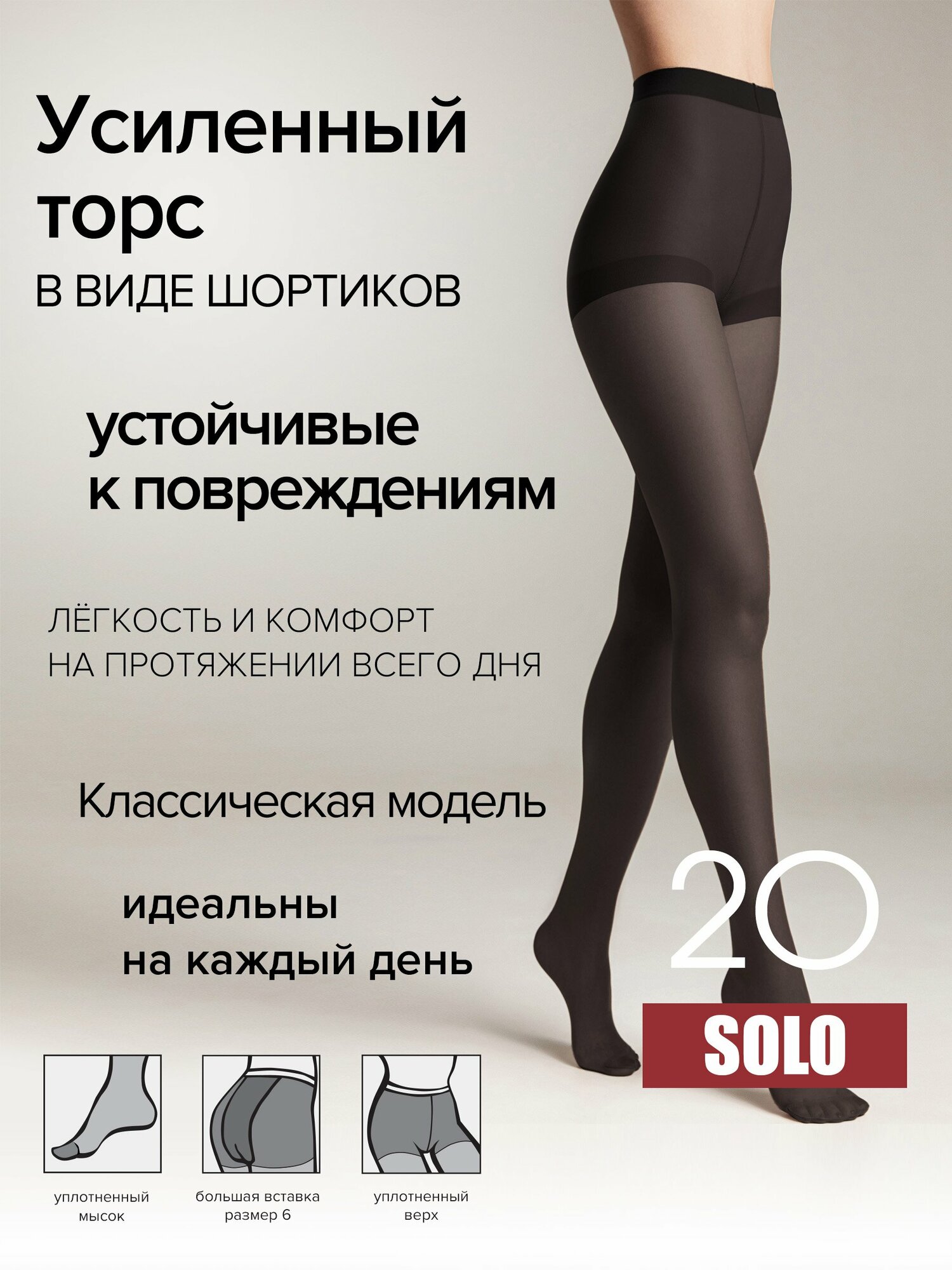 Колготки женские классические тонкие с шортиками Conte Solo 20 den, LYCRA®, размер 3=M, цвет Shade=Темно-бежевый холодный