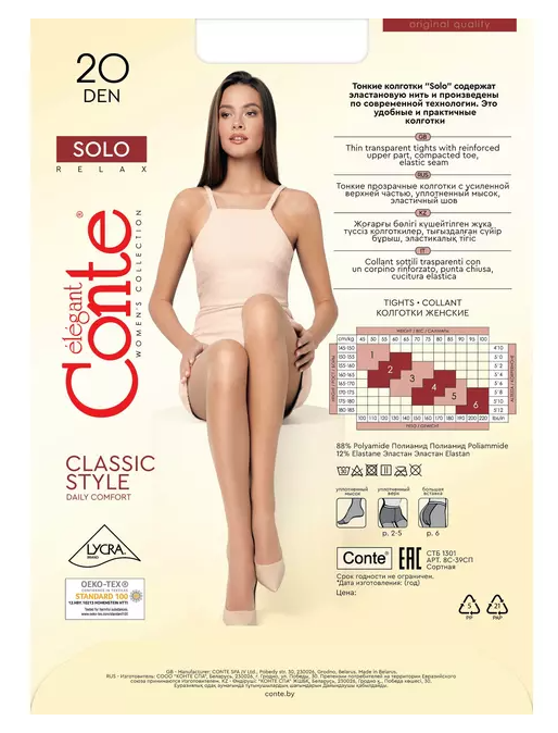 Колготки Conte Solo 20, 20 den, профилактический класс компресии, shade