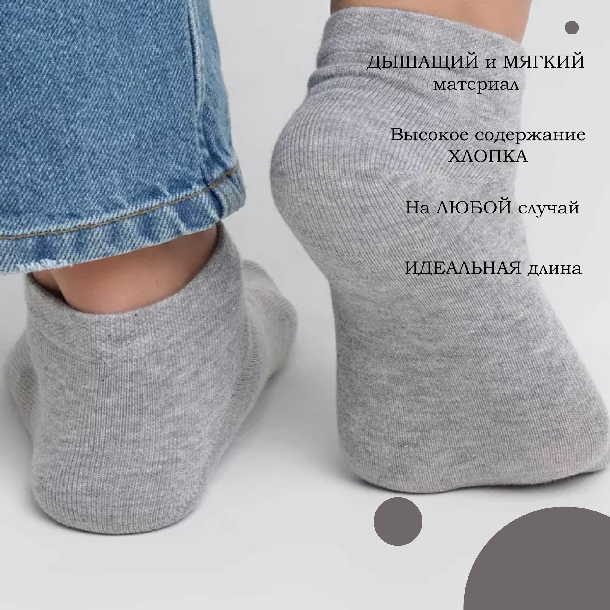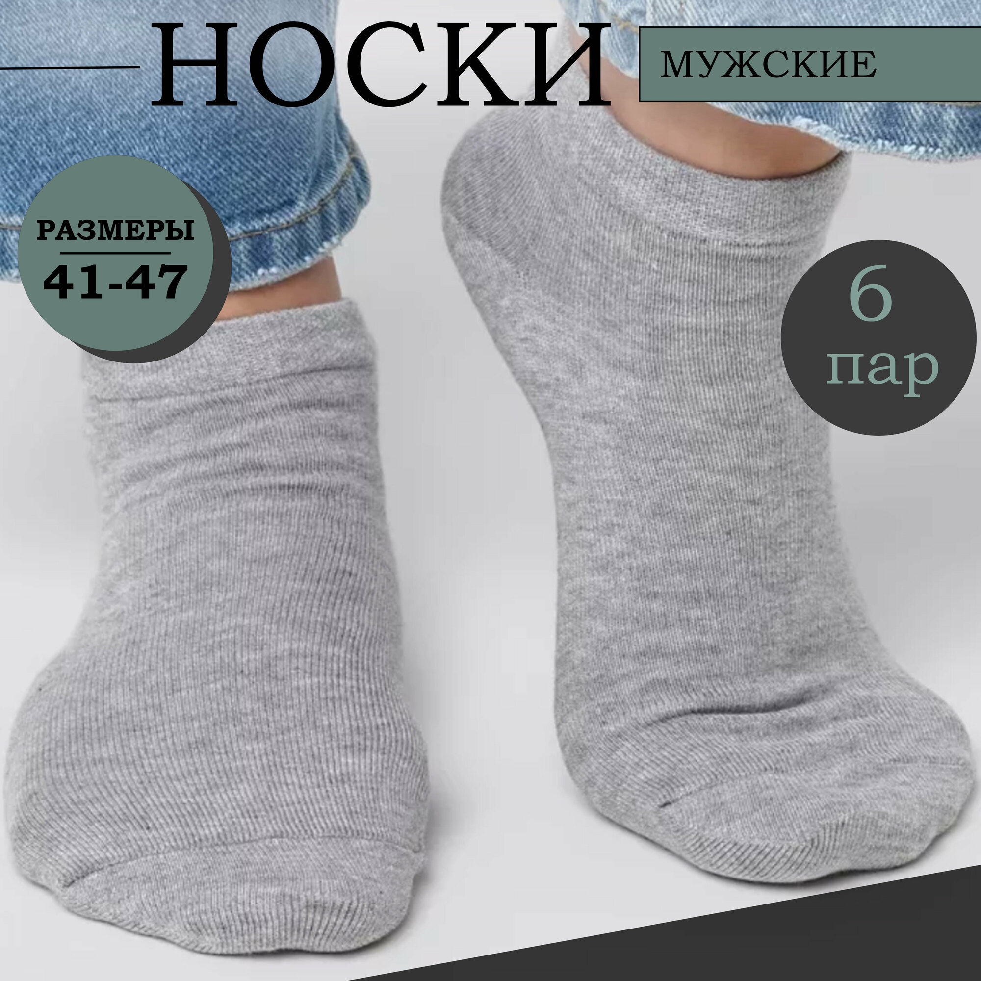 Носки мужские короткие спортивные 41-47 размер хлопок комплект из 6 пар серые