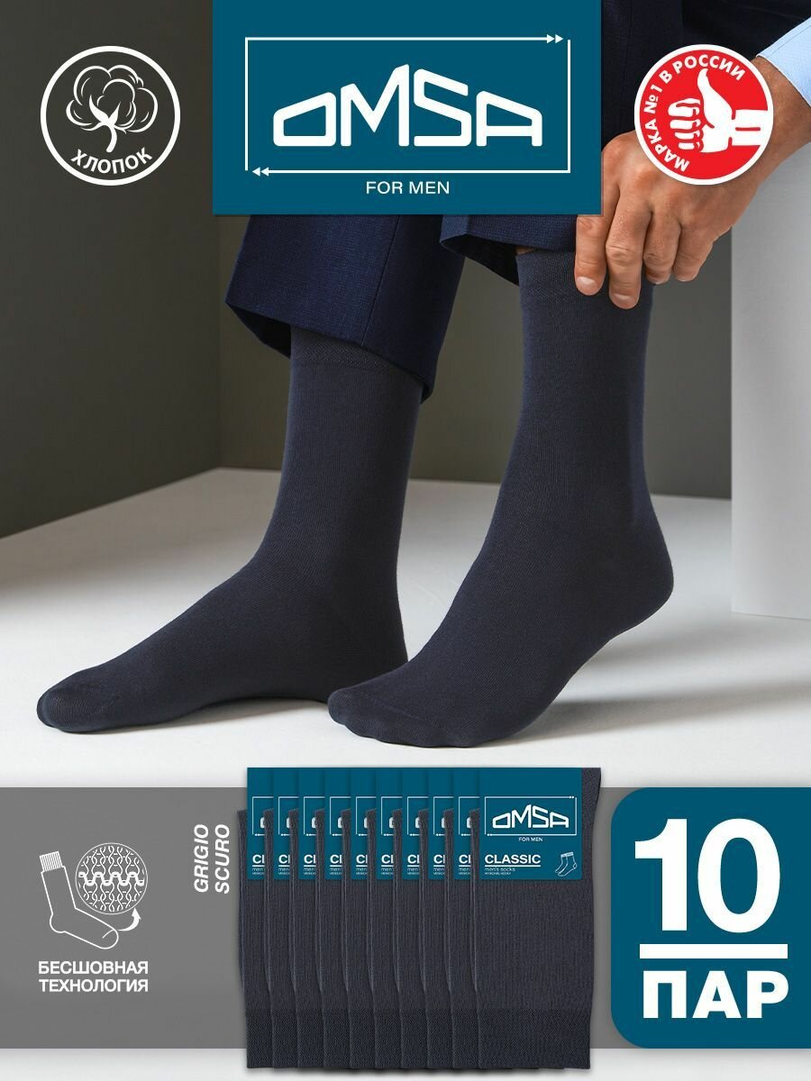 Купить Носки мужские OMSA CLASSIC 204, высокие, длинные, хлопок, Grigio Scuro 42-44. Набор - 10 шт