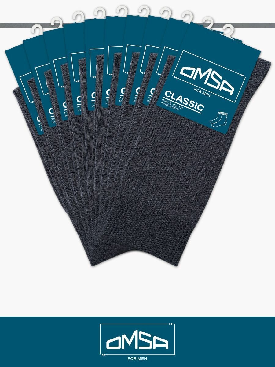 Купить Носки мужские OMSA CLASSIC 204, высокие, длинные, хлопок, Grigio Scuro 39-41. Набор - 10 шт