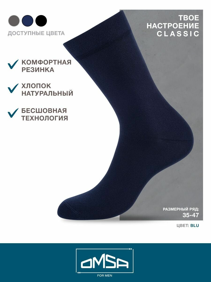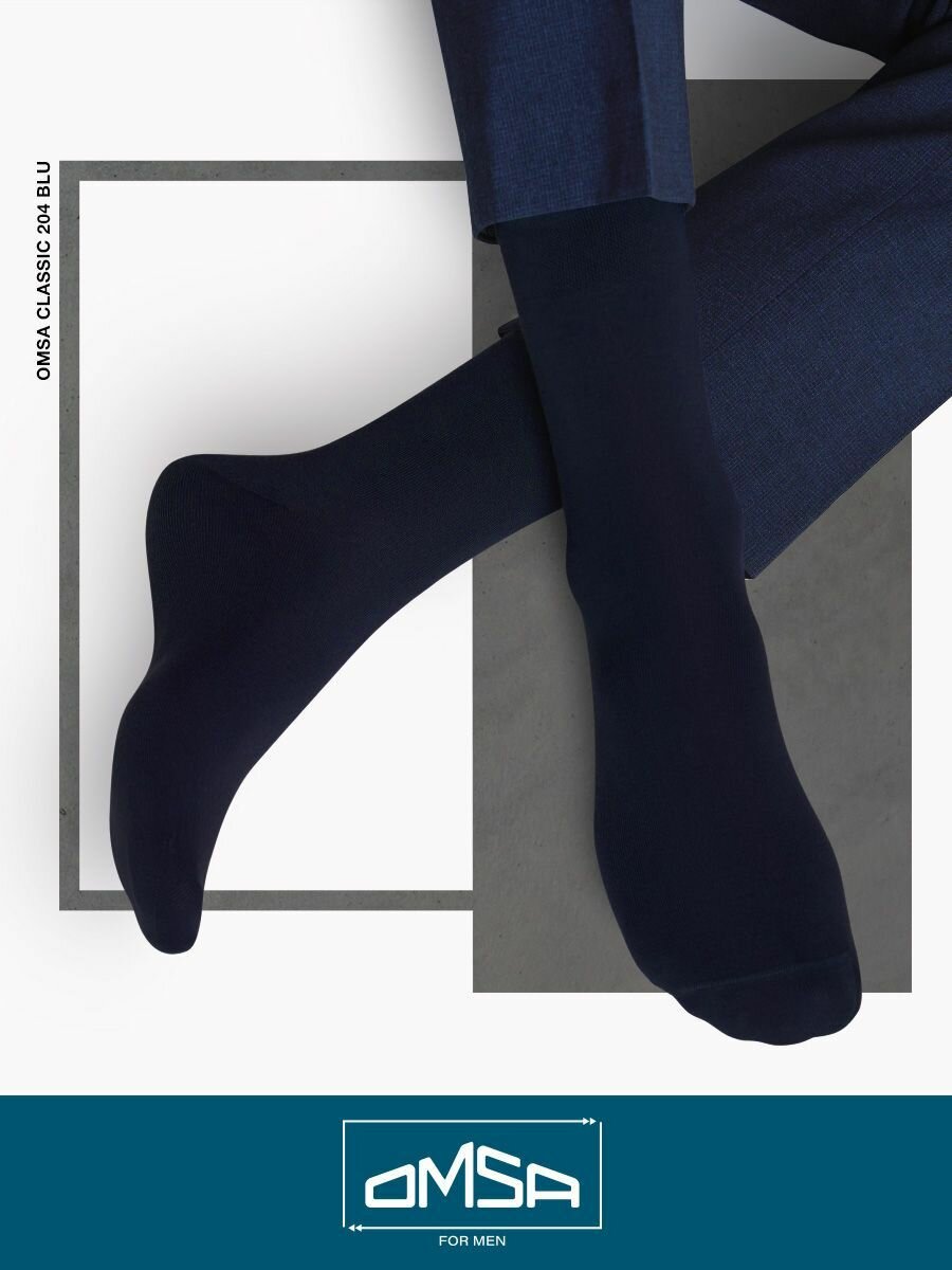 Носки мужские OMSA CLASSIC 204, высокие, длинные, хлопок, Blu 39-41. Набор - 10 шт