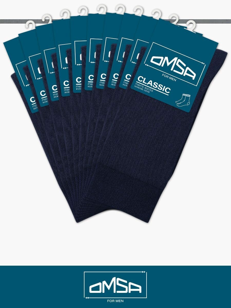 Купить Носки мужские OMSA CLASSIC 204, высокие, длинные, хлопок, Blu 45-47. Набор - 10 шт